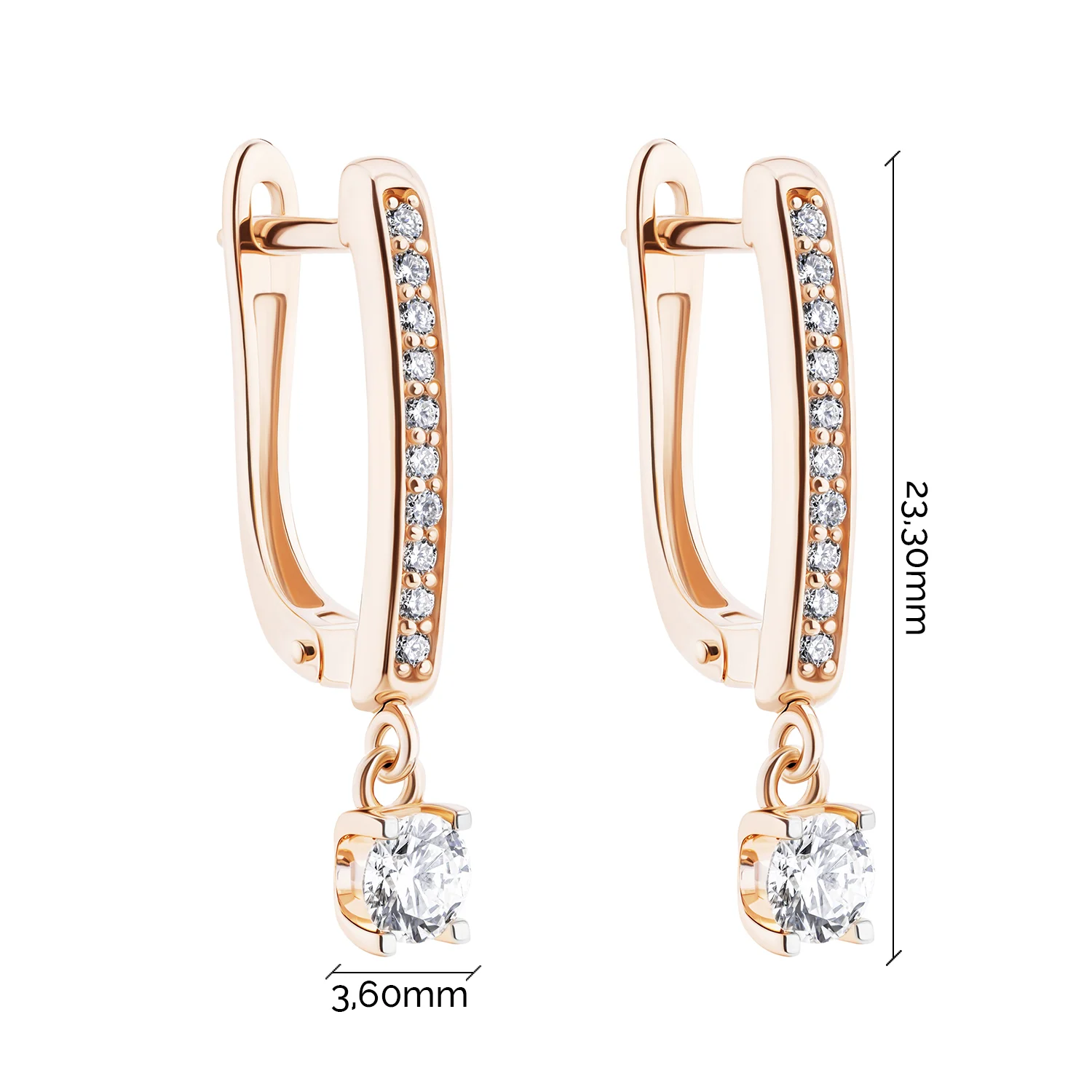 Сережки із червоного золота з підвісом і з діамантами - 2135854