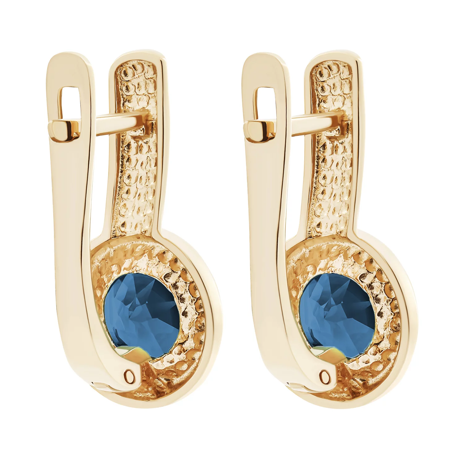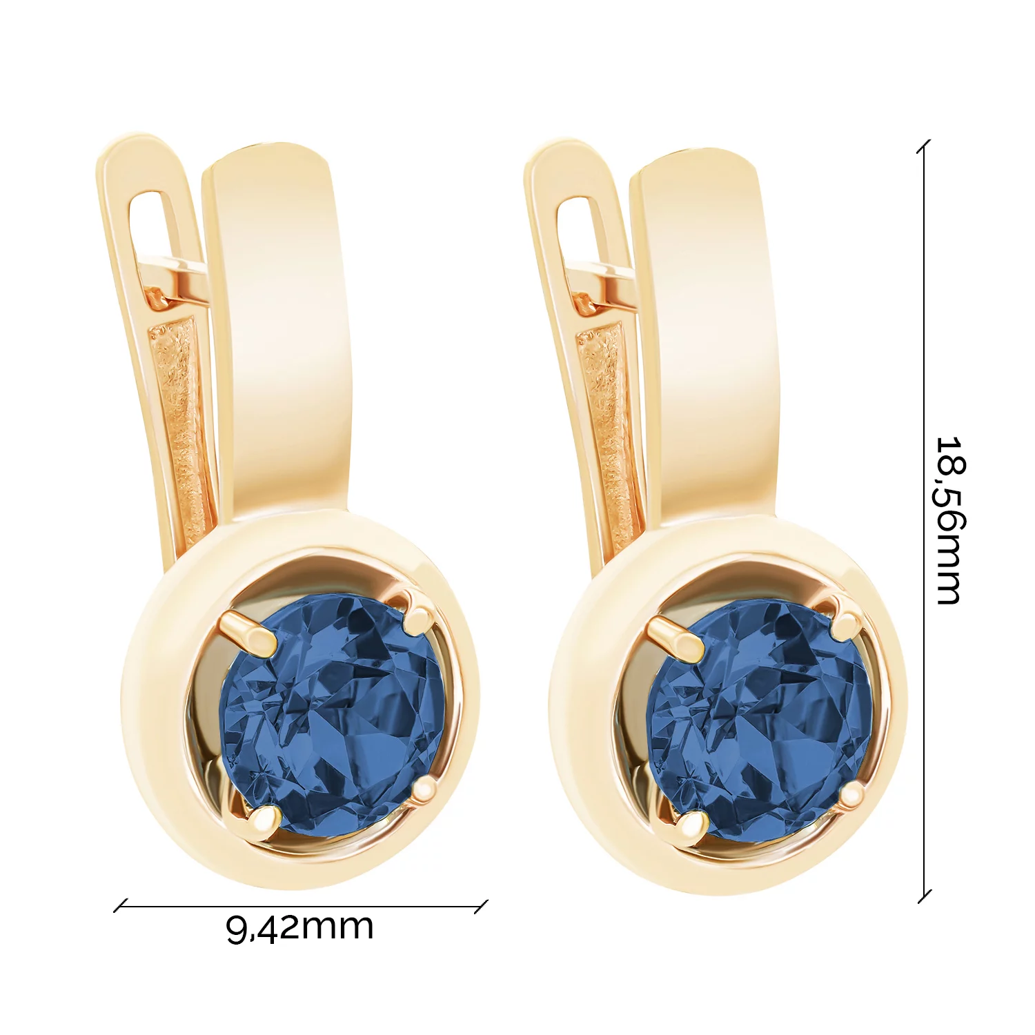 Сережки-гвоздики в червоному золоті з топазом лондон і фіанітами - 1670605