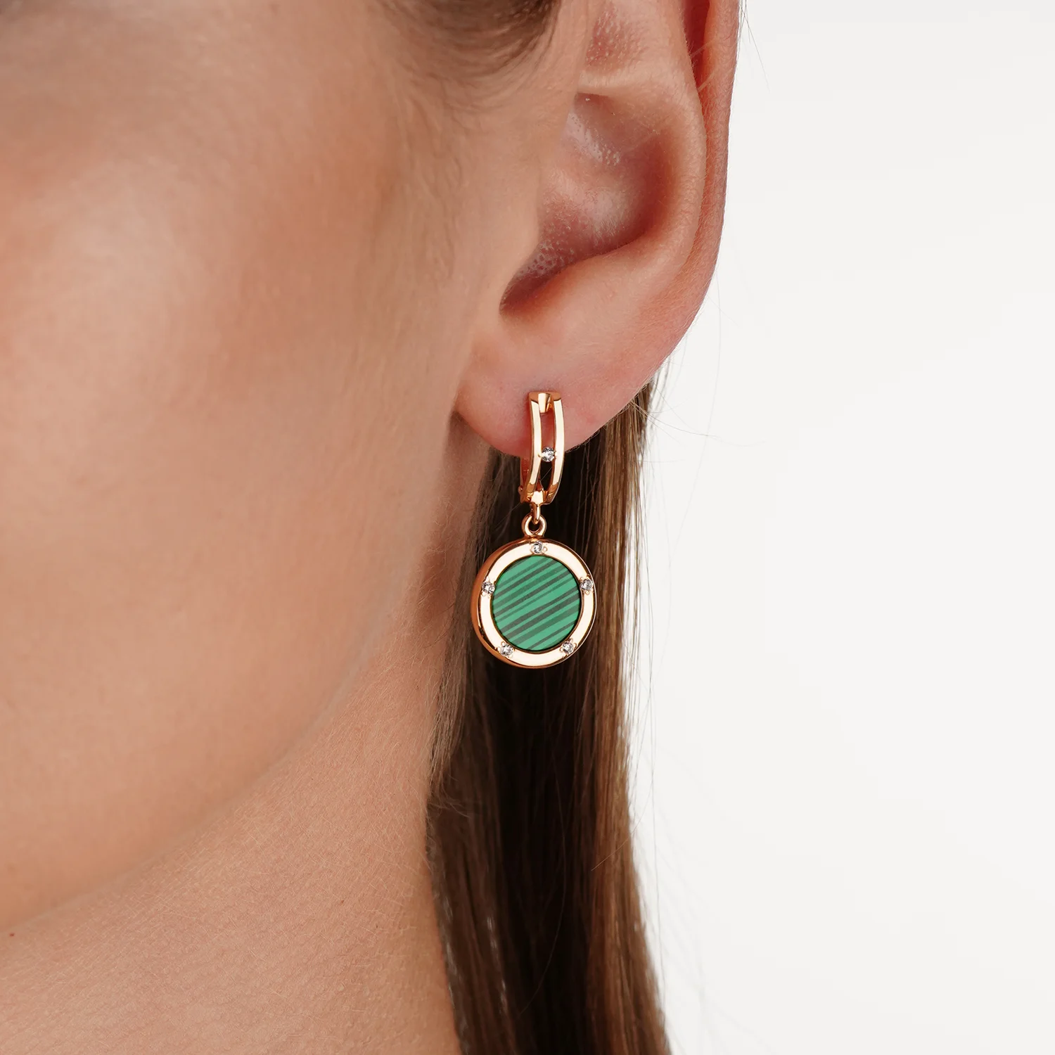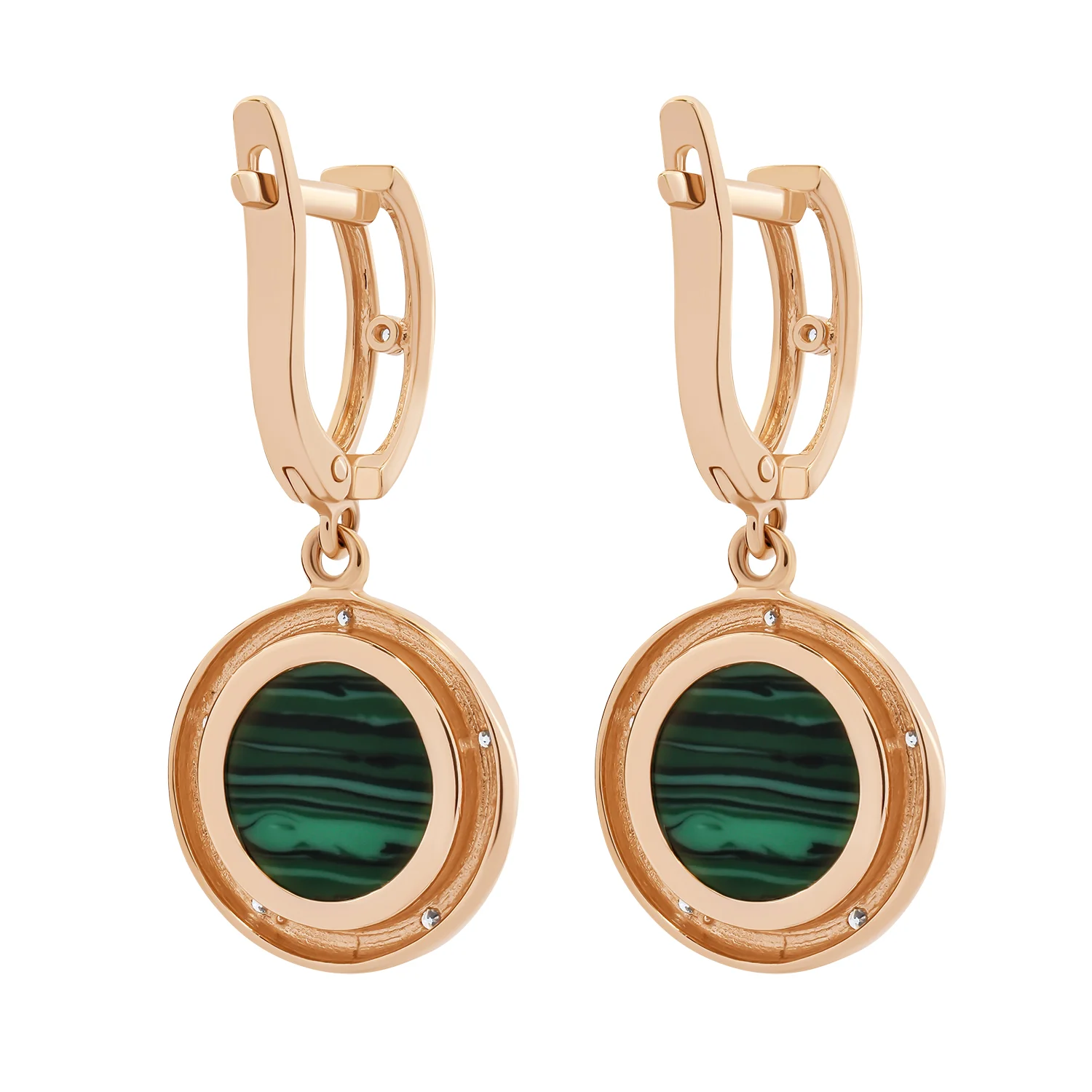 Сережки "Коло" з червоного золота з підвісами з доріжками фіанітів - 1748377