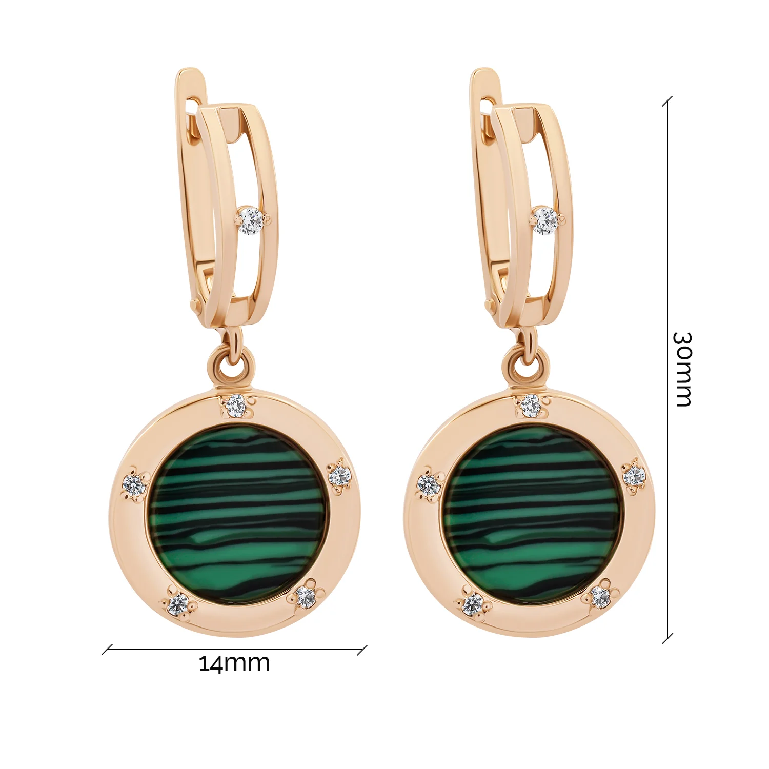 Сережки з червоного золота з підвісним турмаліном і фіанітами - 1687879
