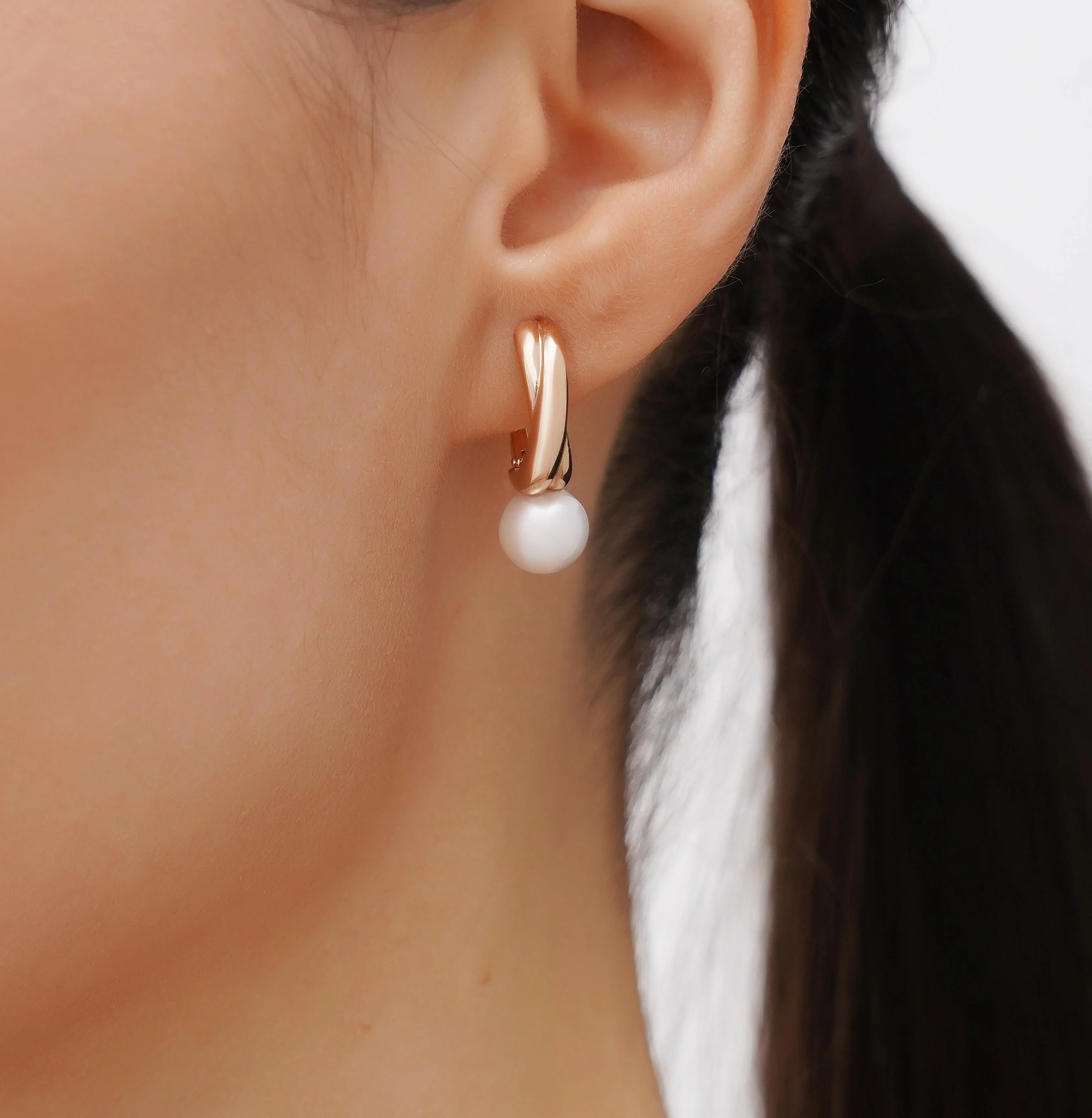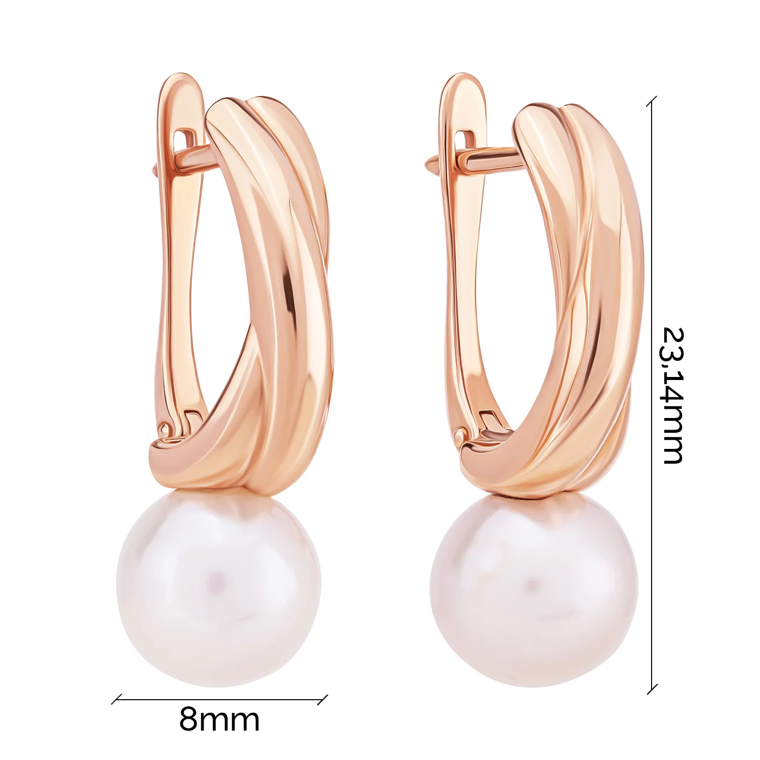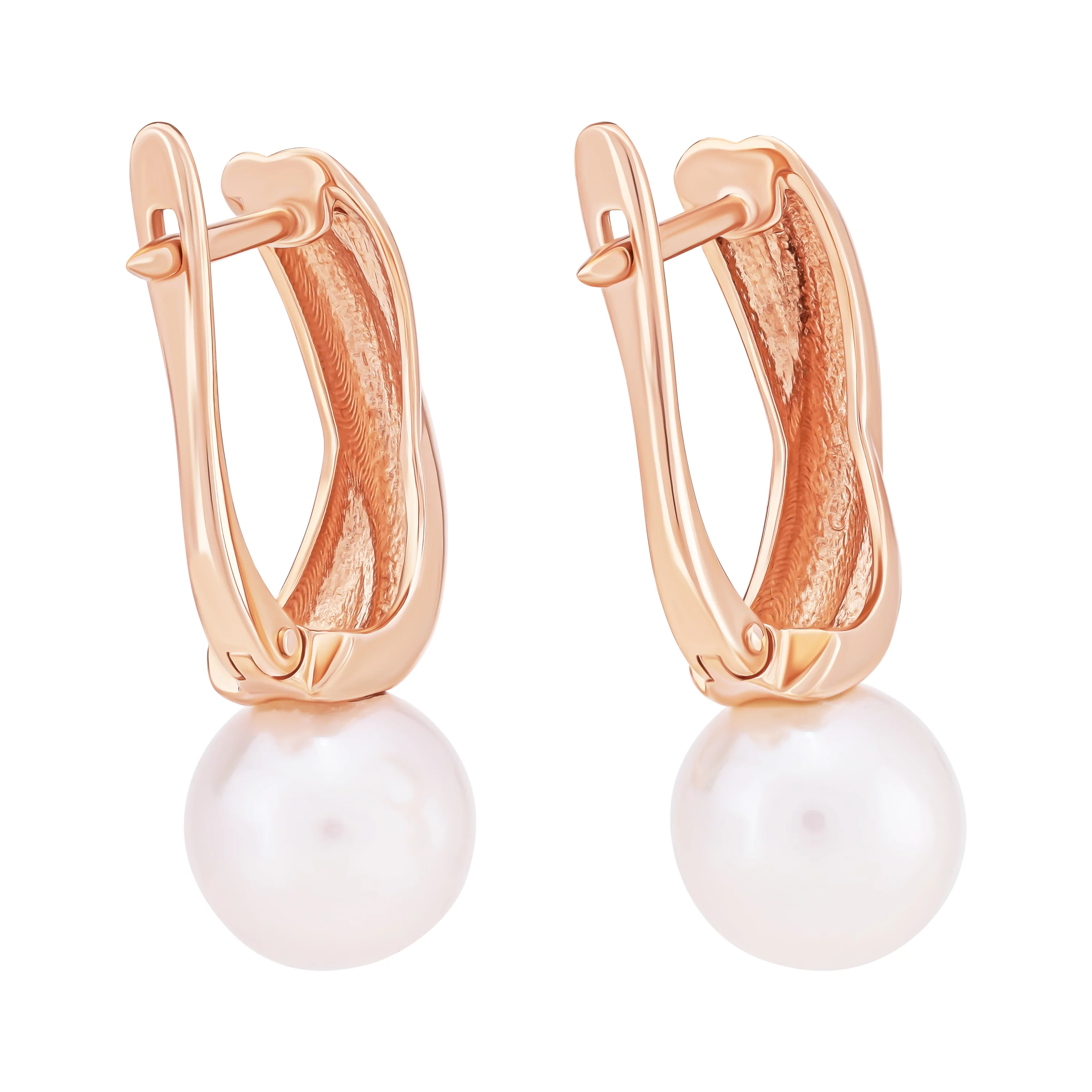 Сережки у формі листочка з червоного золота з перлиною і фіанітами - 1630904