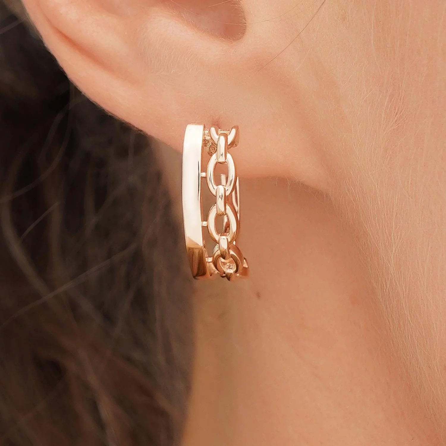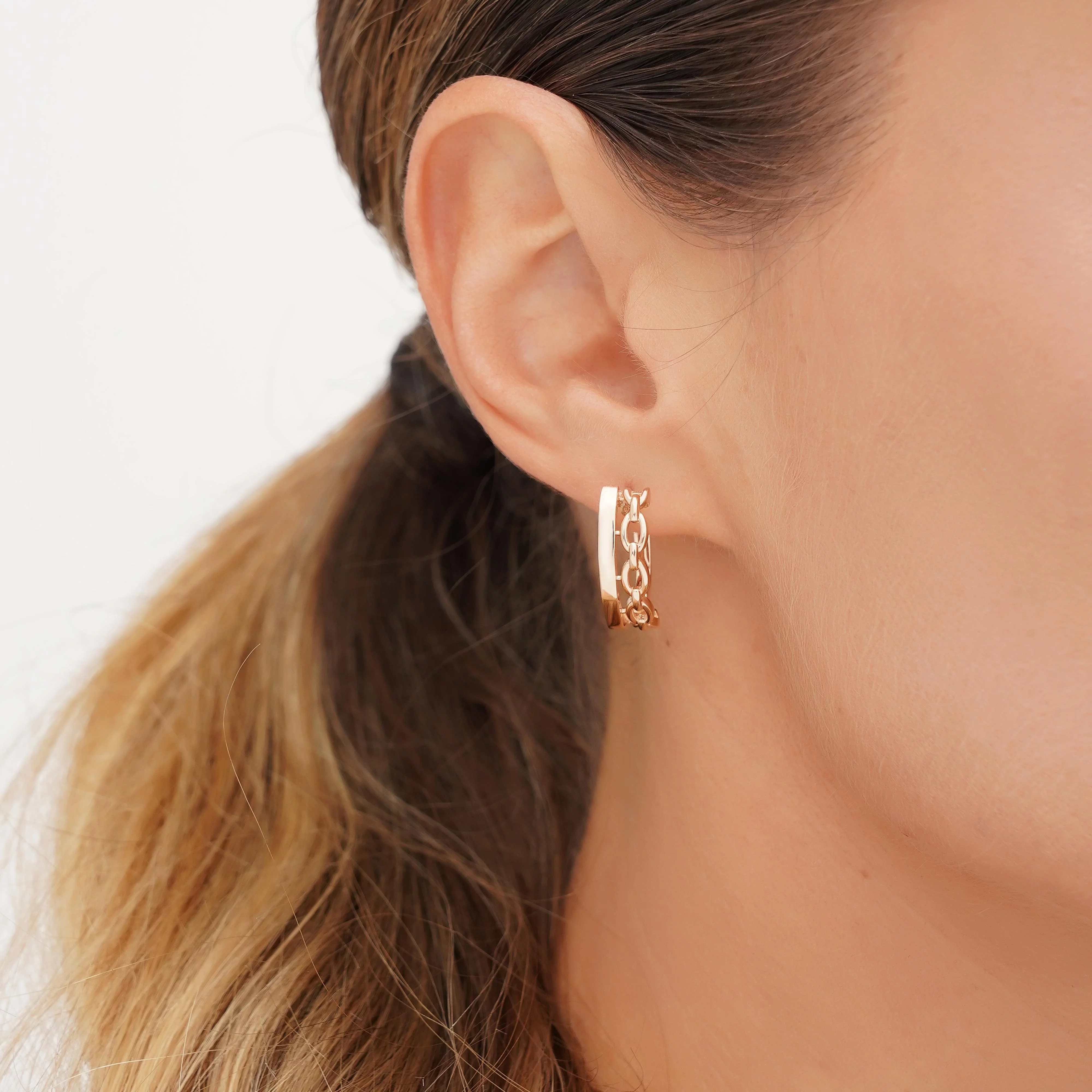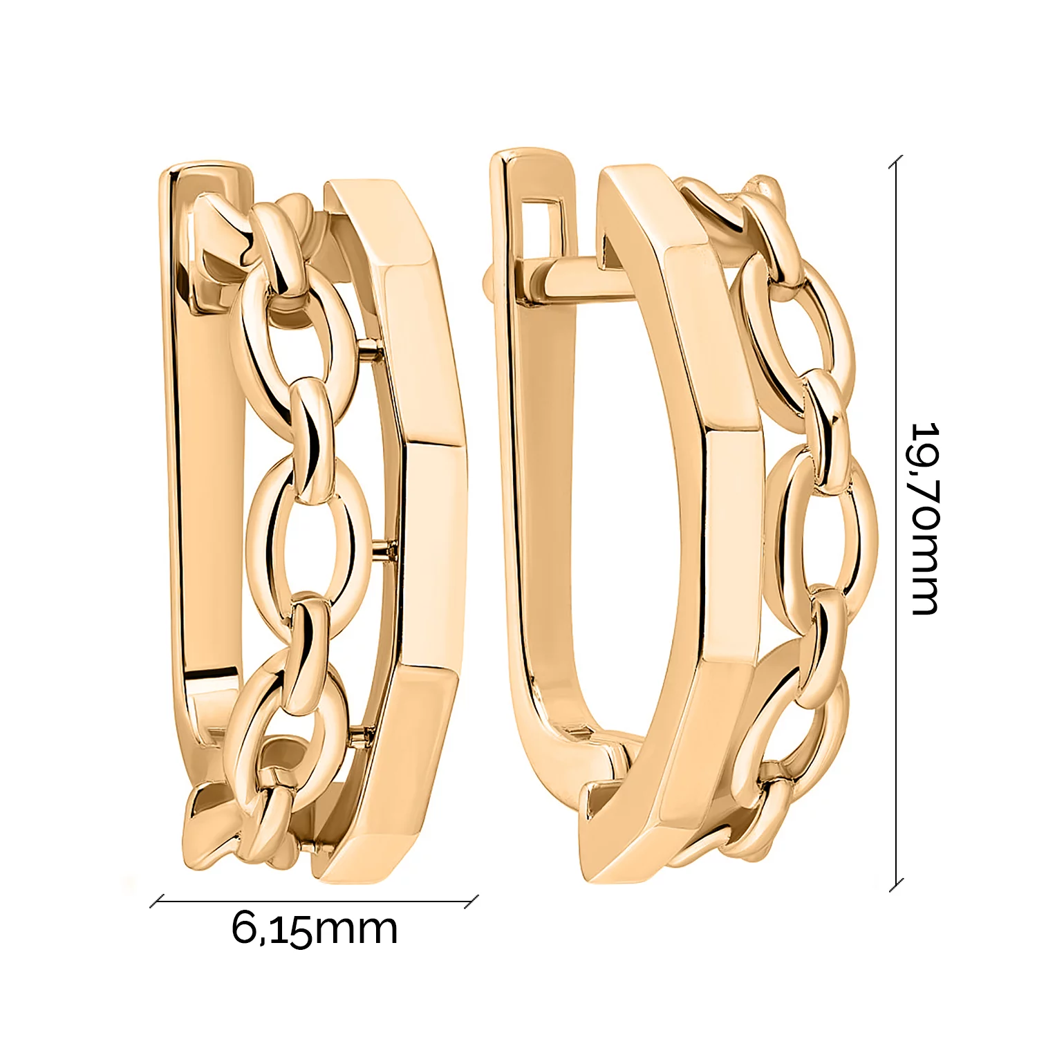 Сережки-гвоздики з підвісом із комбінованого золота з алмазною гранню - 1870255