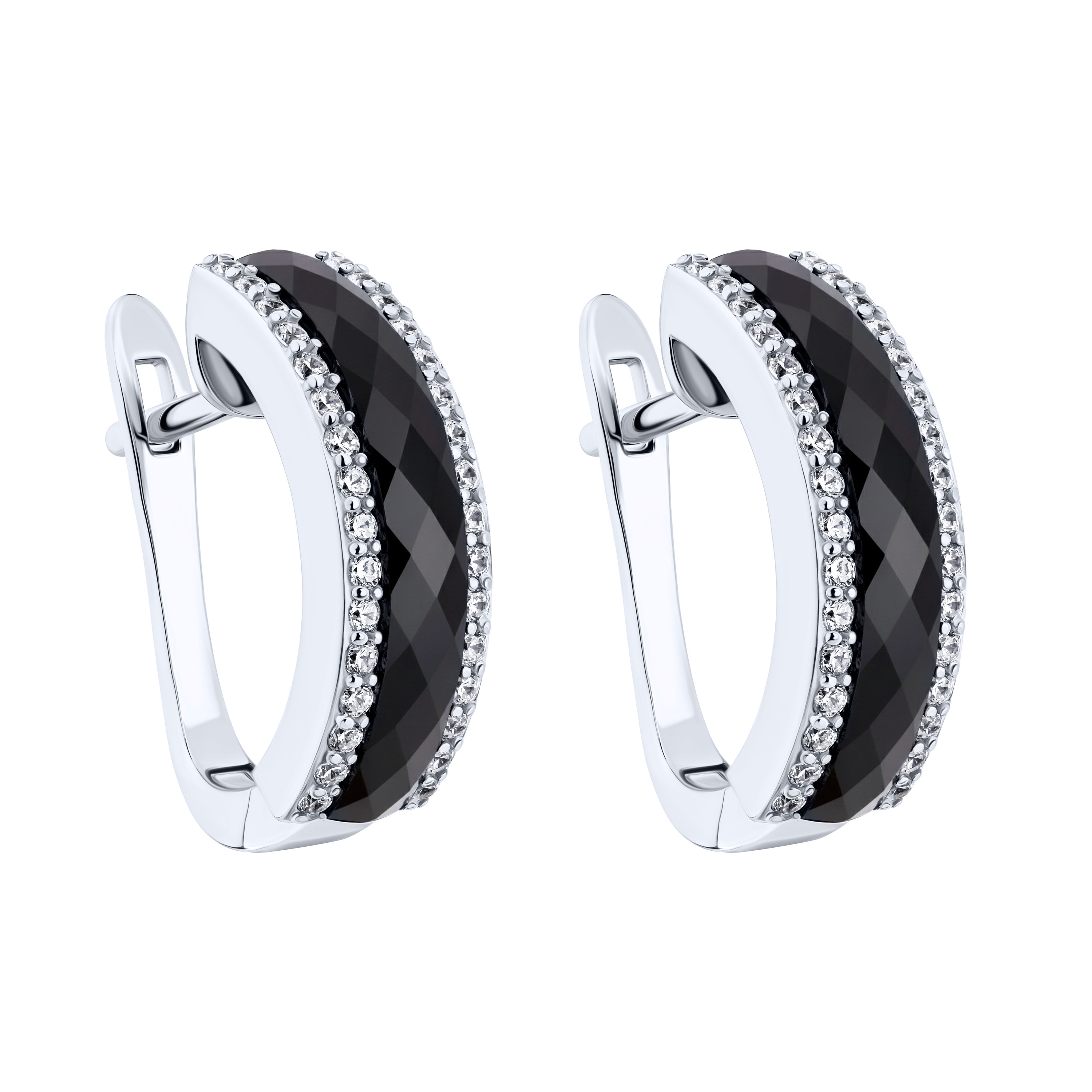 Сережки зі срібла з керамікою та фіанітами - 2172702