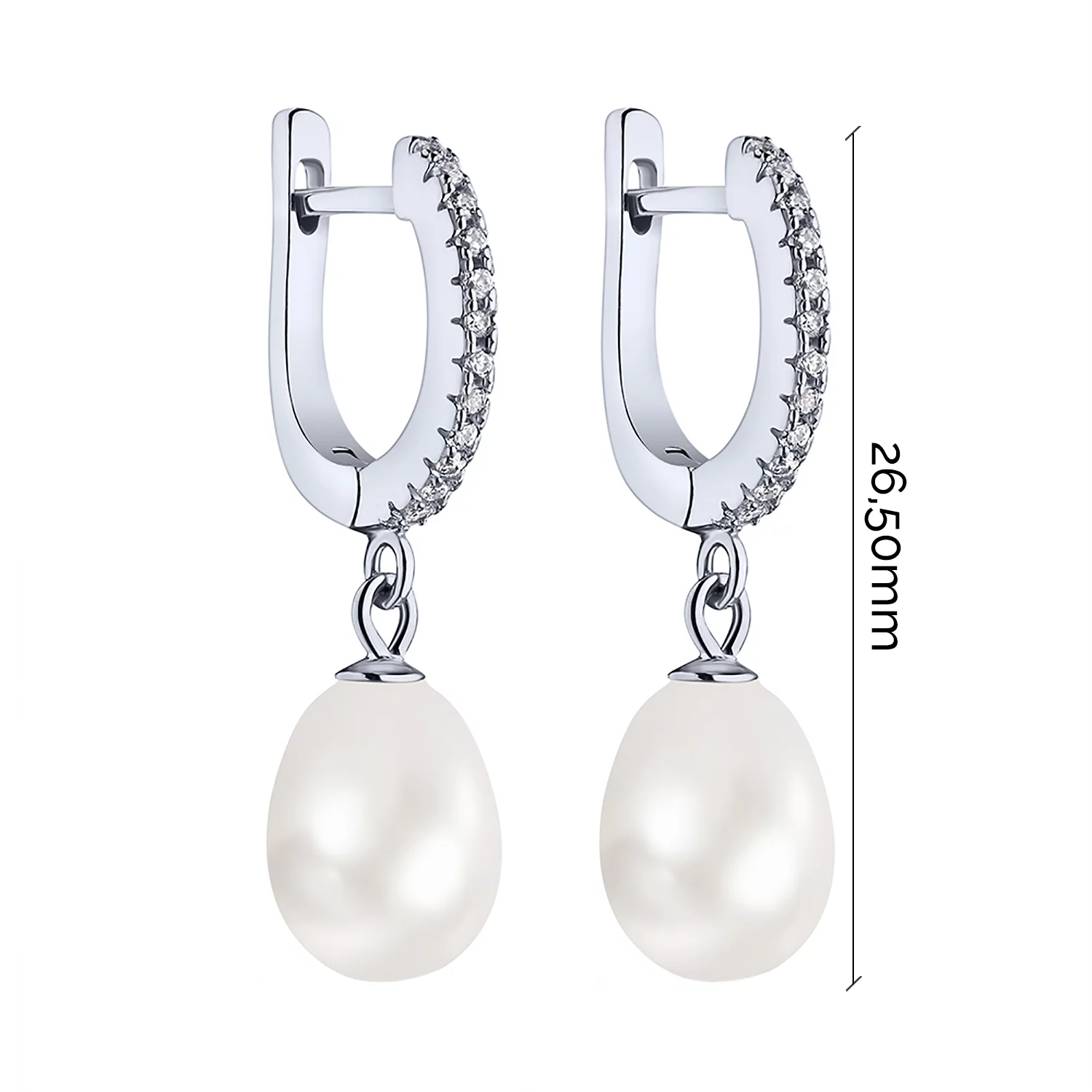 Сережки зі срібла зі смарагдами та фіанітами з підвісками у формі "Квадрат" - 1525082