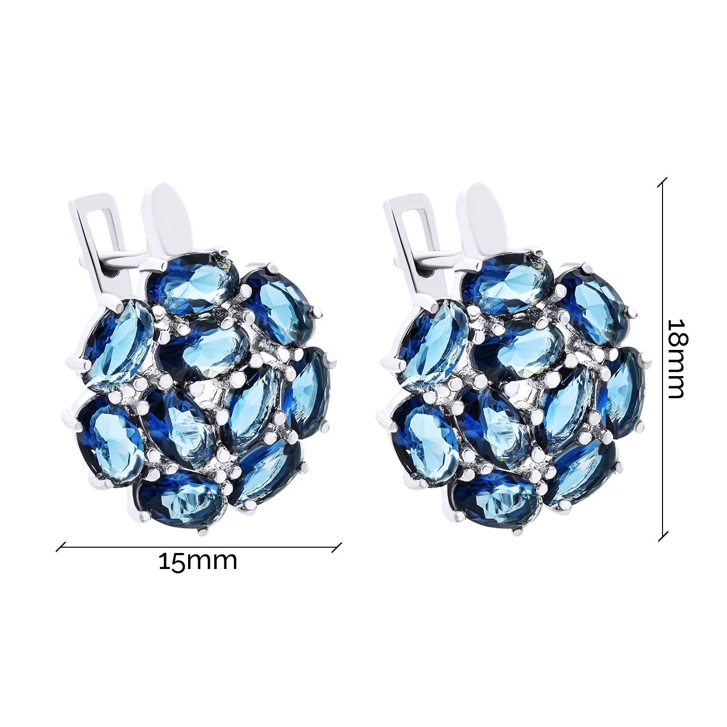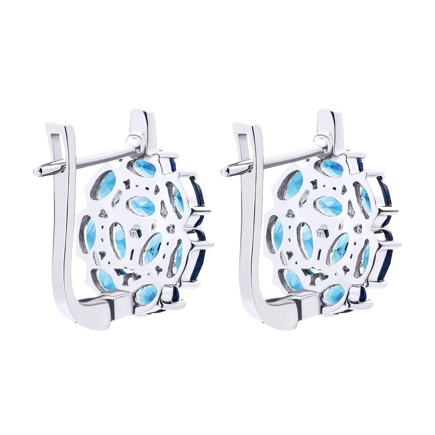 Сережки зі срібла "Квітка" з розсипом сапфірів - 1524814