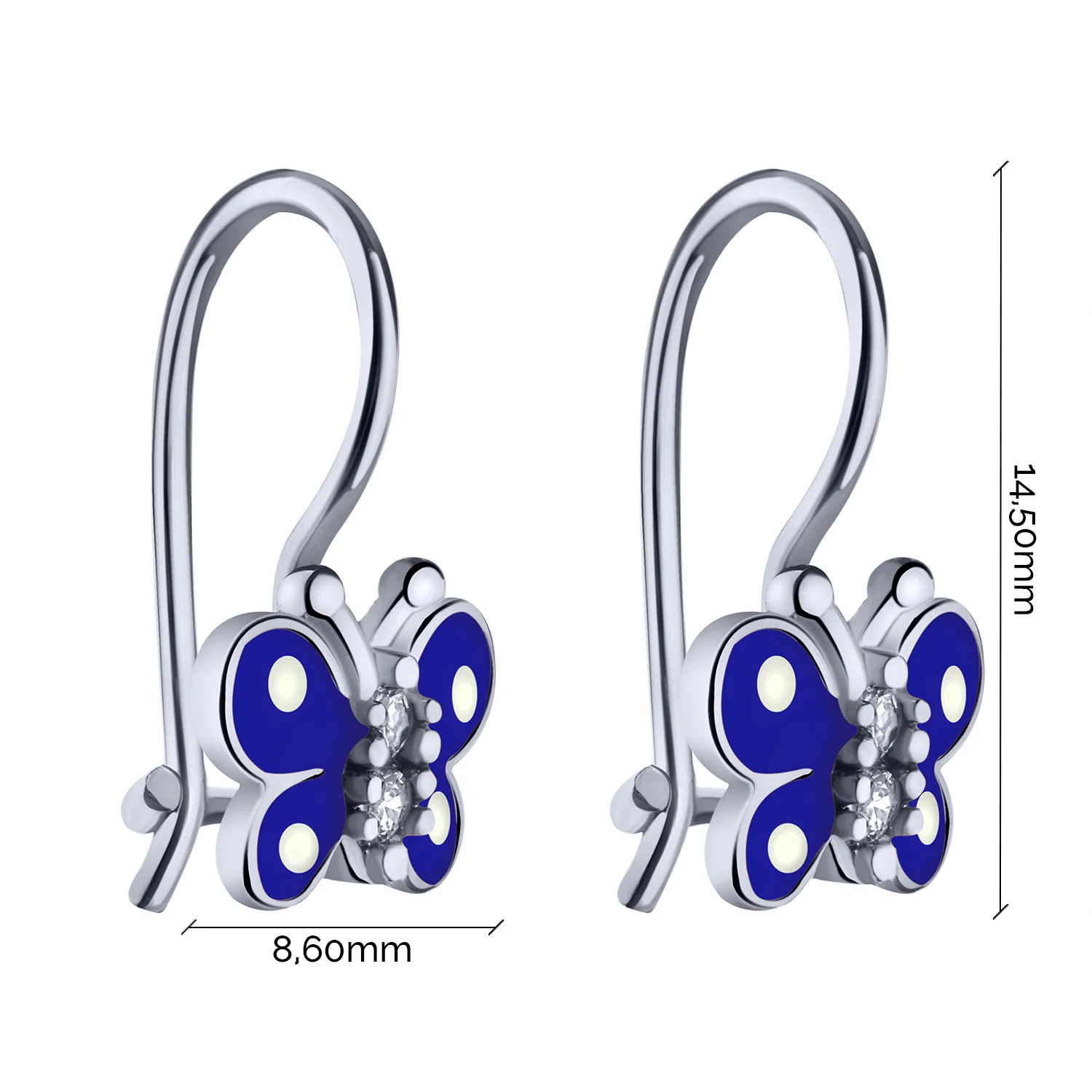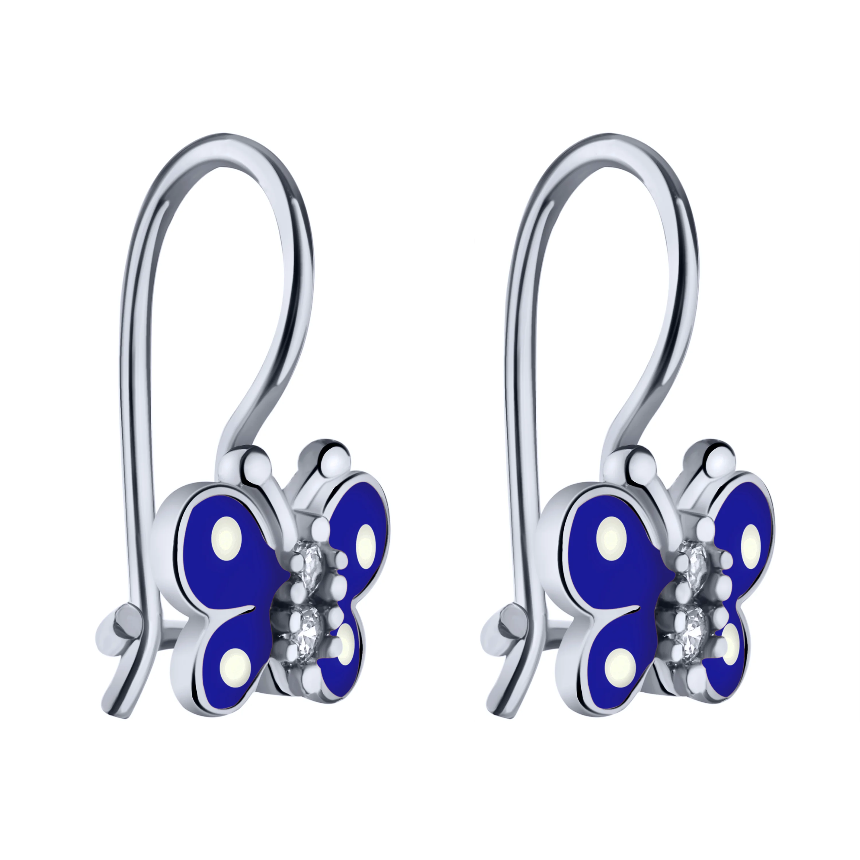Сережки-петлі із срібла в стилі "Метелик" з емаллю і доріжкою з фіанітів - 2006307
