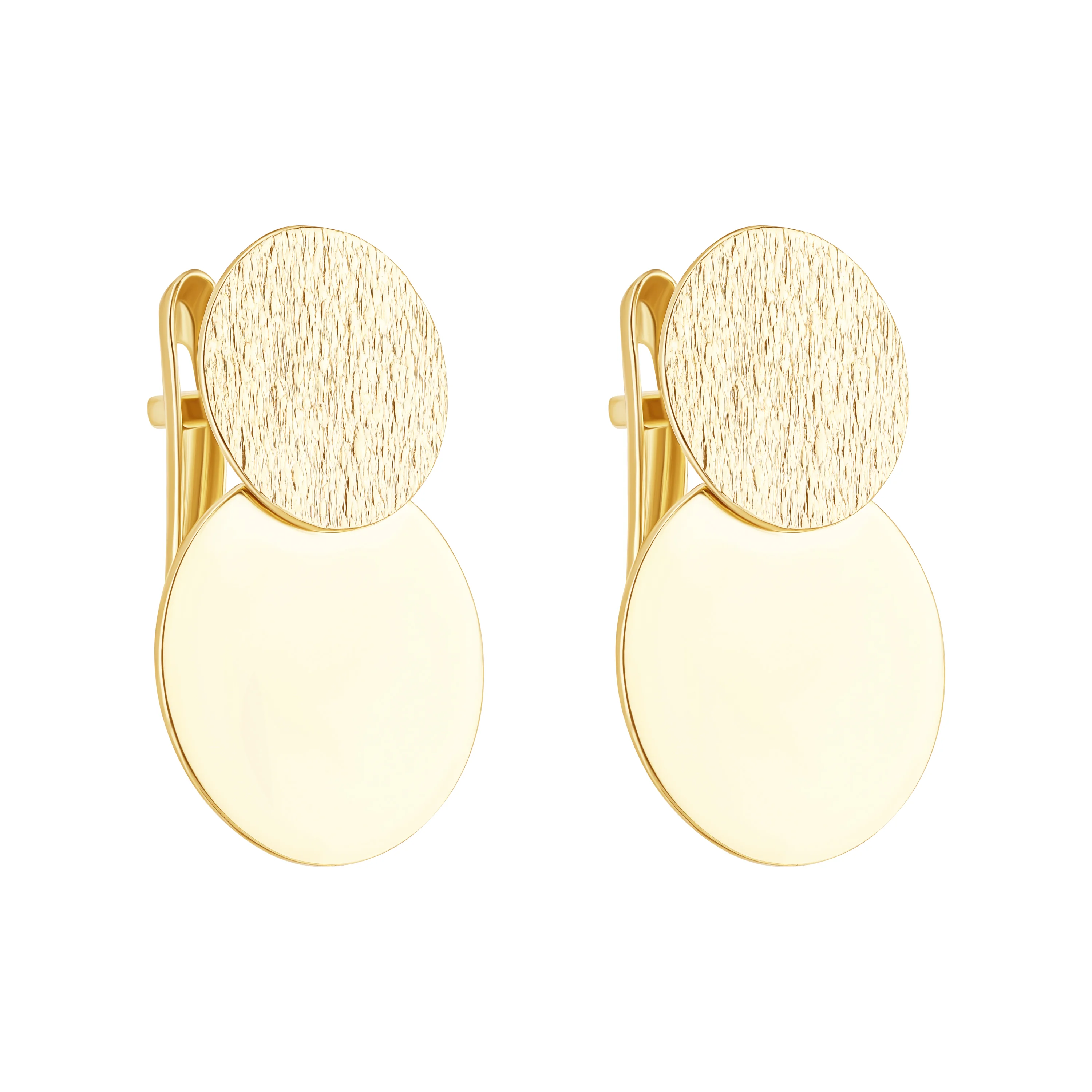Модні сережки-монети із жовтого золота – модель з мінімалістичними акцентами у фешн-подачі. Зручний англійський замок, оптимальна форма, компактні розміри – все це робить виріб таким популярним. Сережки користуються попитом з-поміж жінок різного віку.