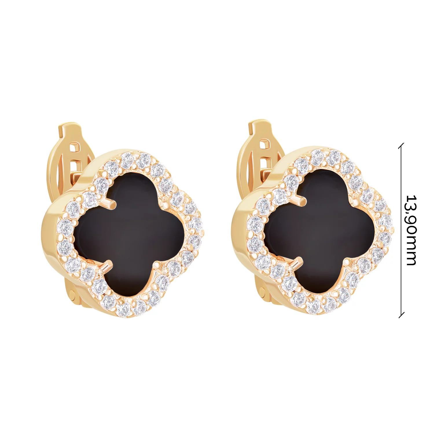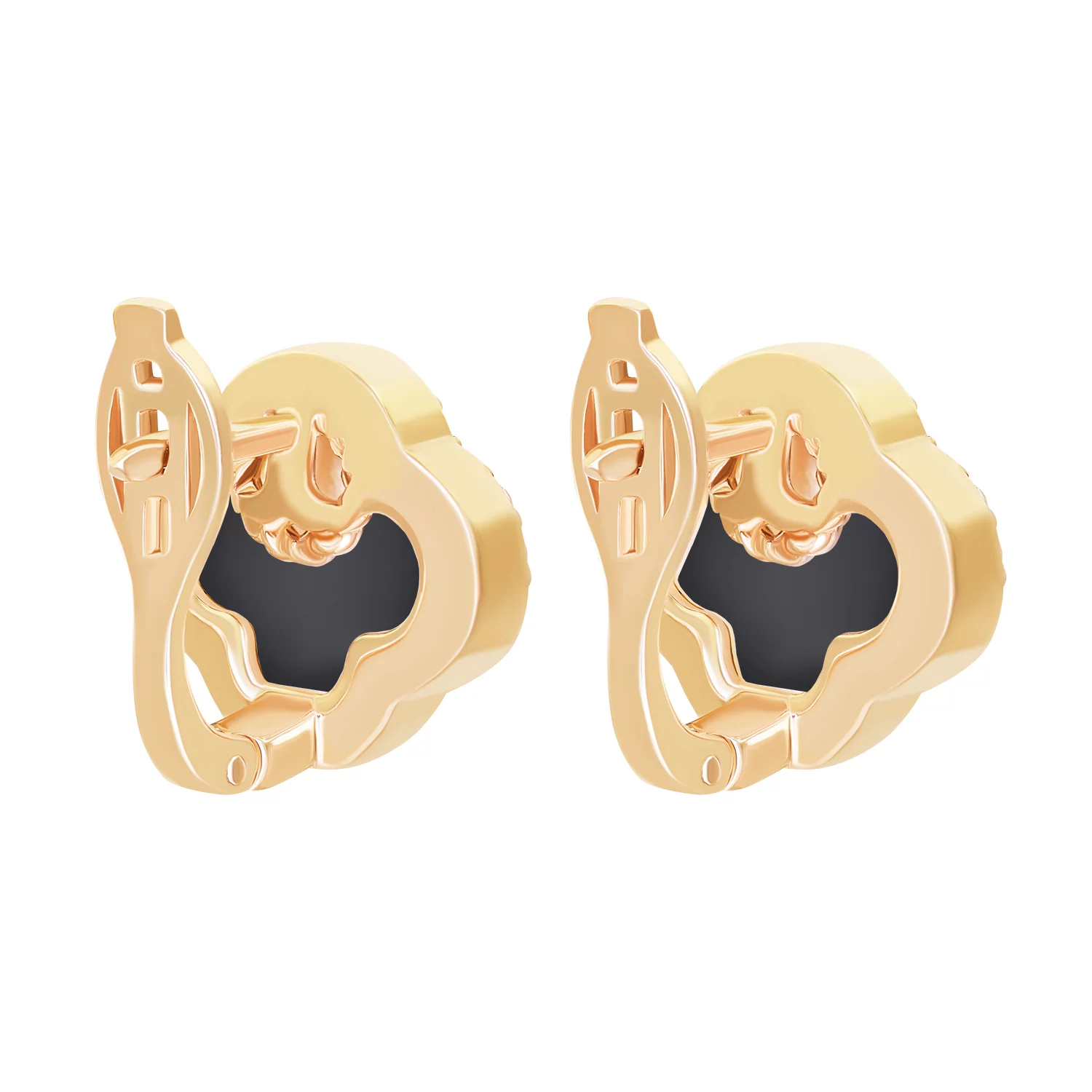 Стильні сережки-гвоздики "Флора" з червоного золота з емаллю та фіанітом - 1927691