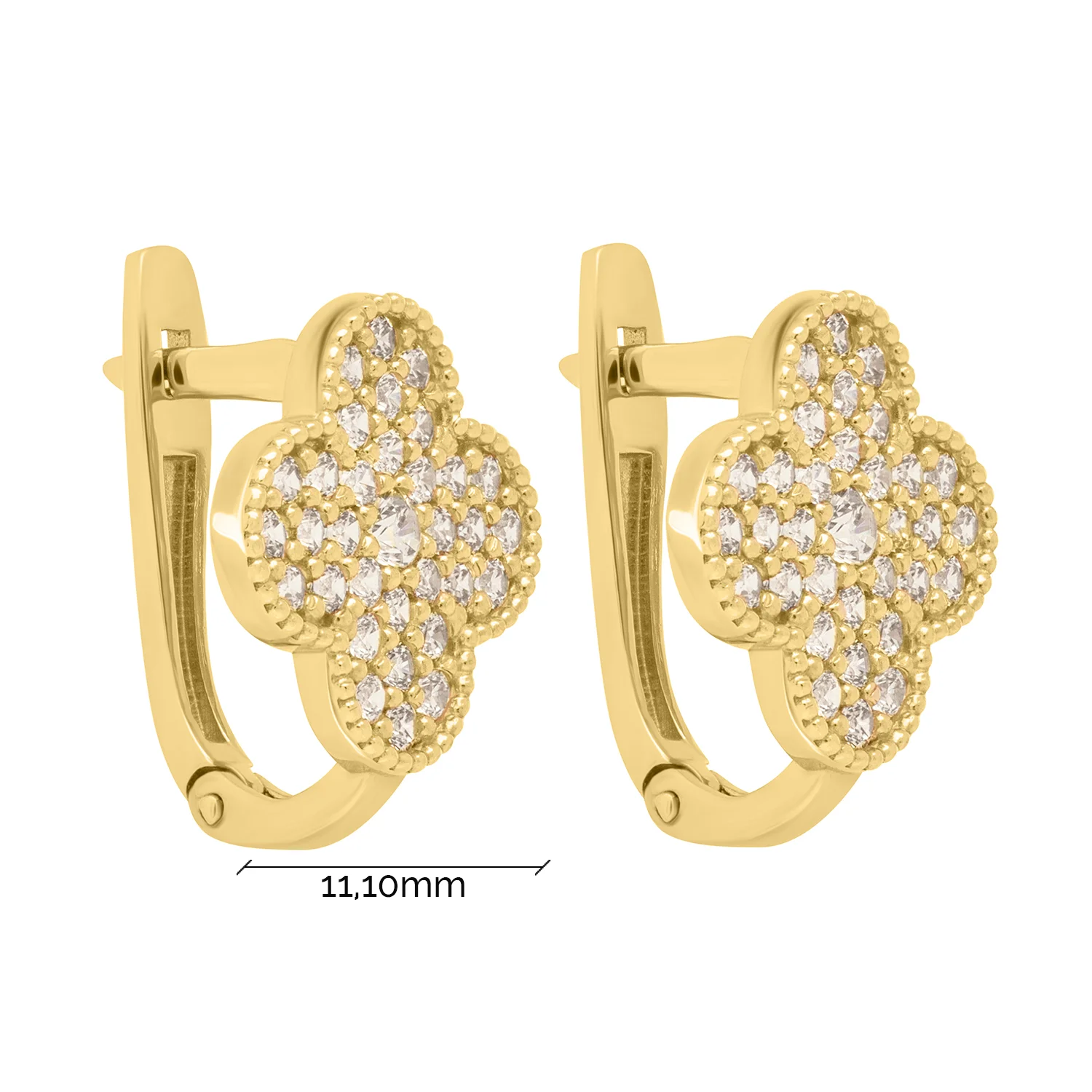 Стильні сережки "Конюшина" з білого золота з доріжкою фіанітів - 1872988