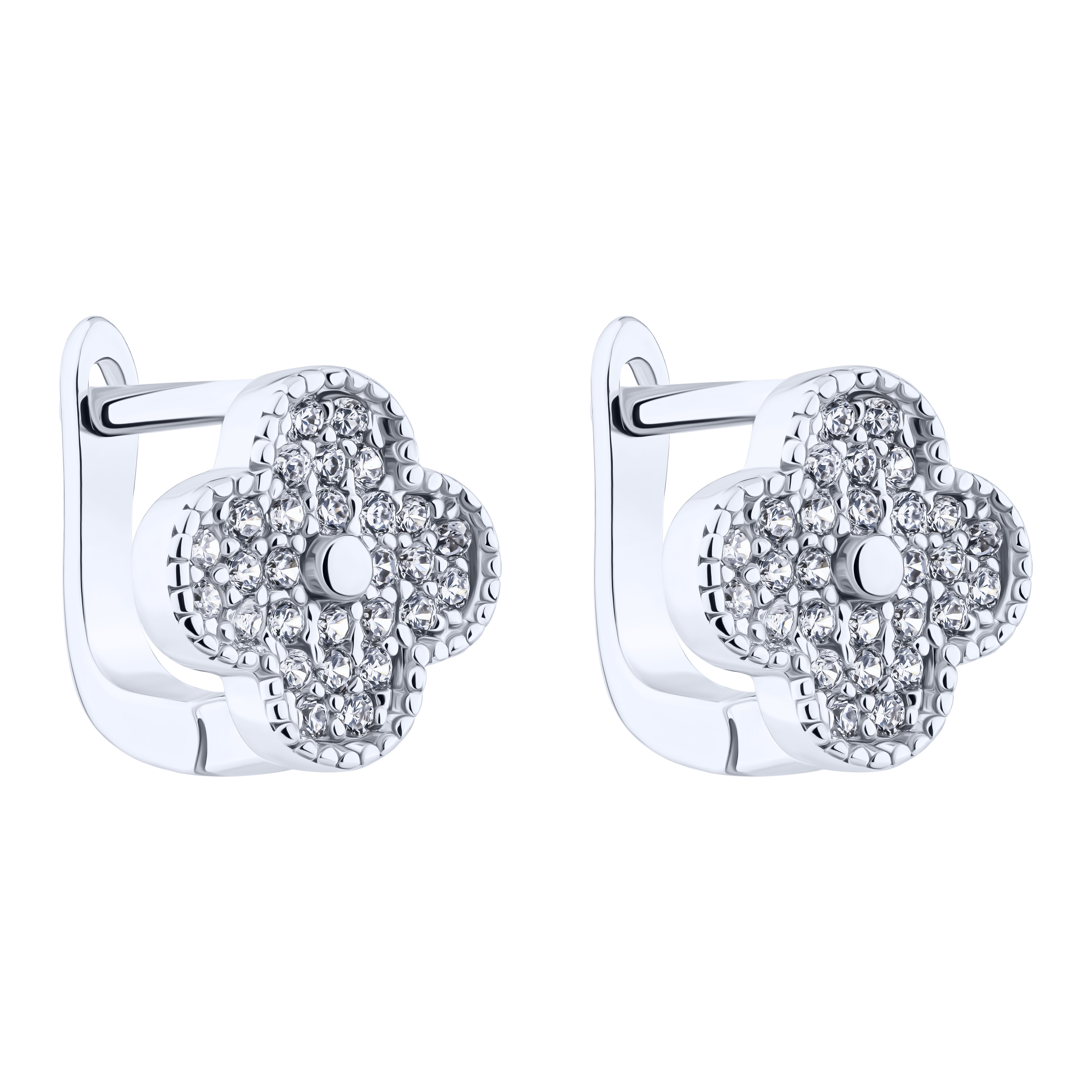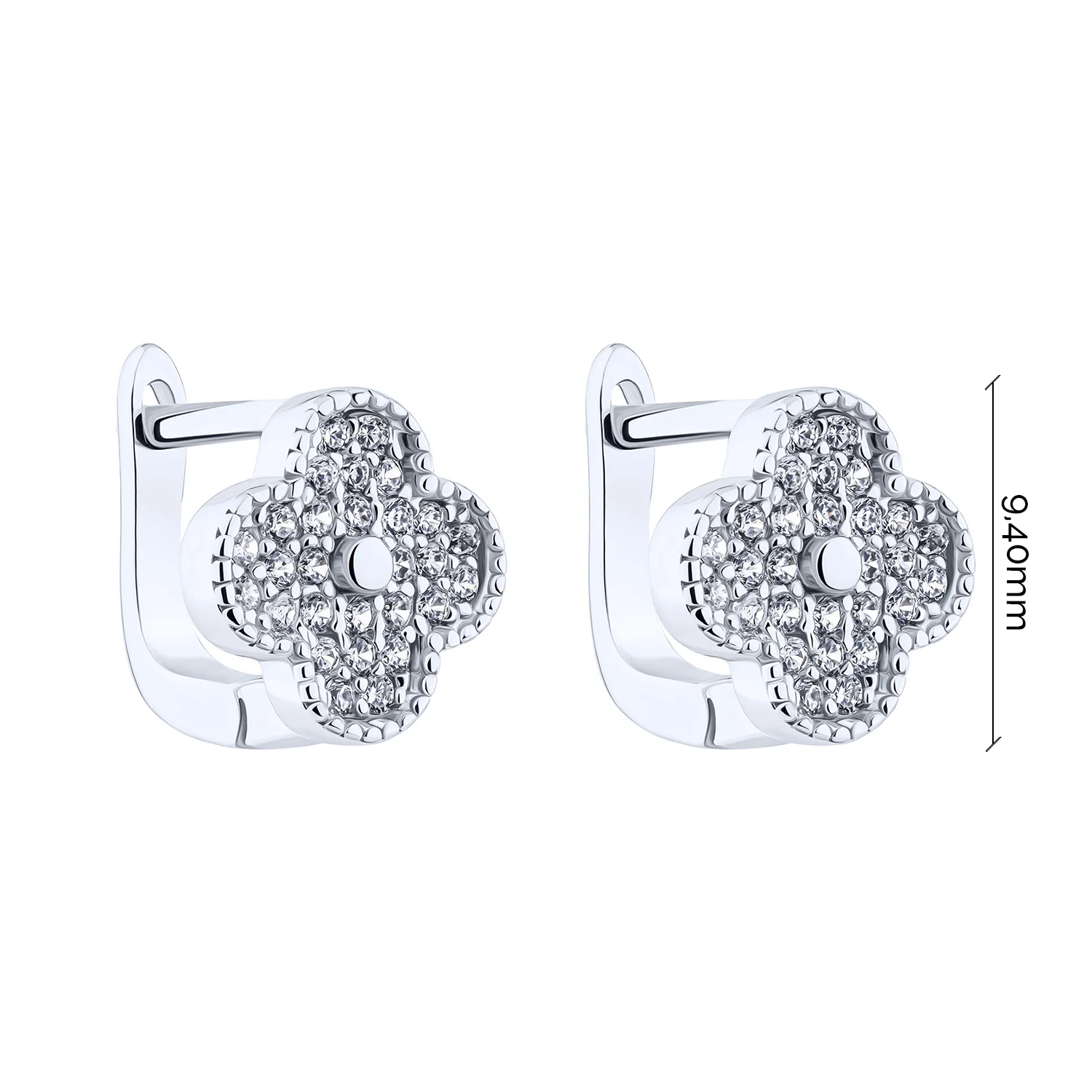 Сережки "Конюшина" зі срібла з фіанітами - 2188696