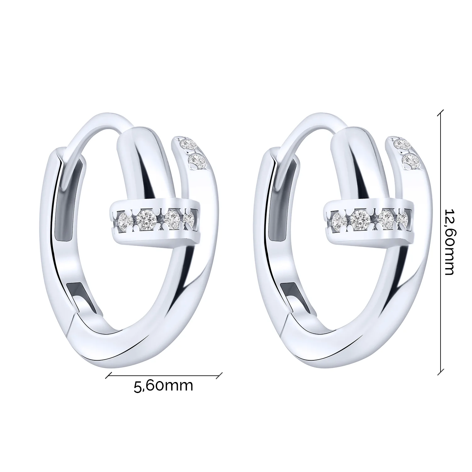 Сережки-кільця "Цвях" зі срібла з фіанітами - 2123419