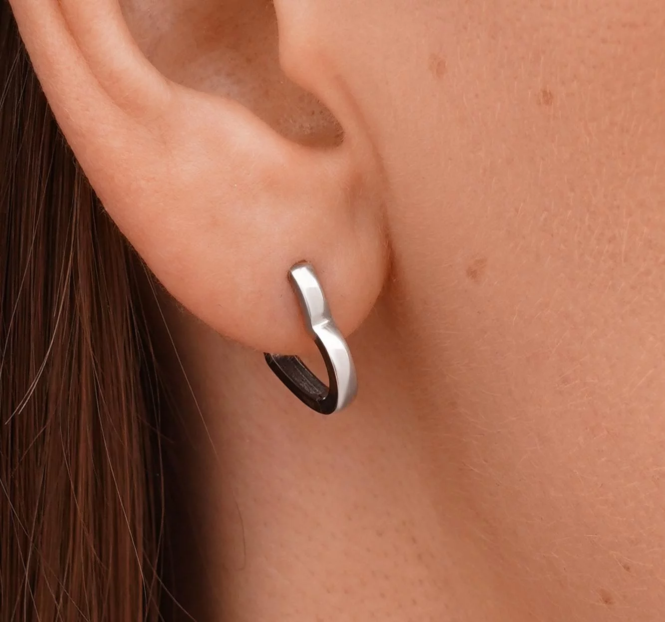 Сережки-кільця в жовтому та білому золоті з алмазною гранню у формі серця - 1563281