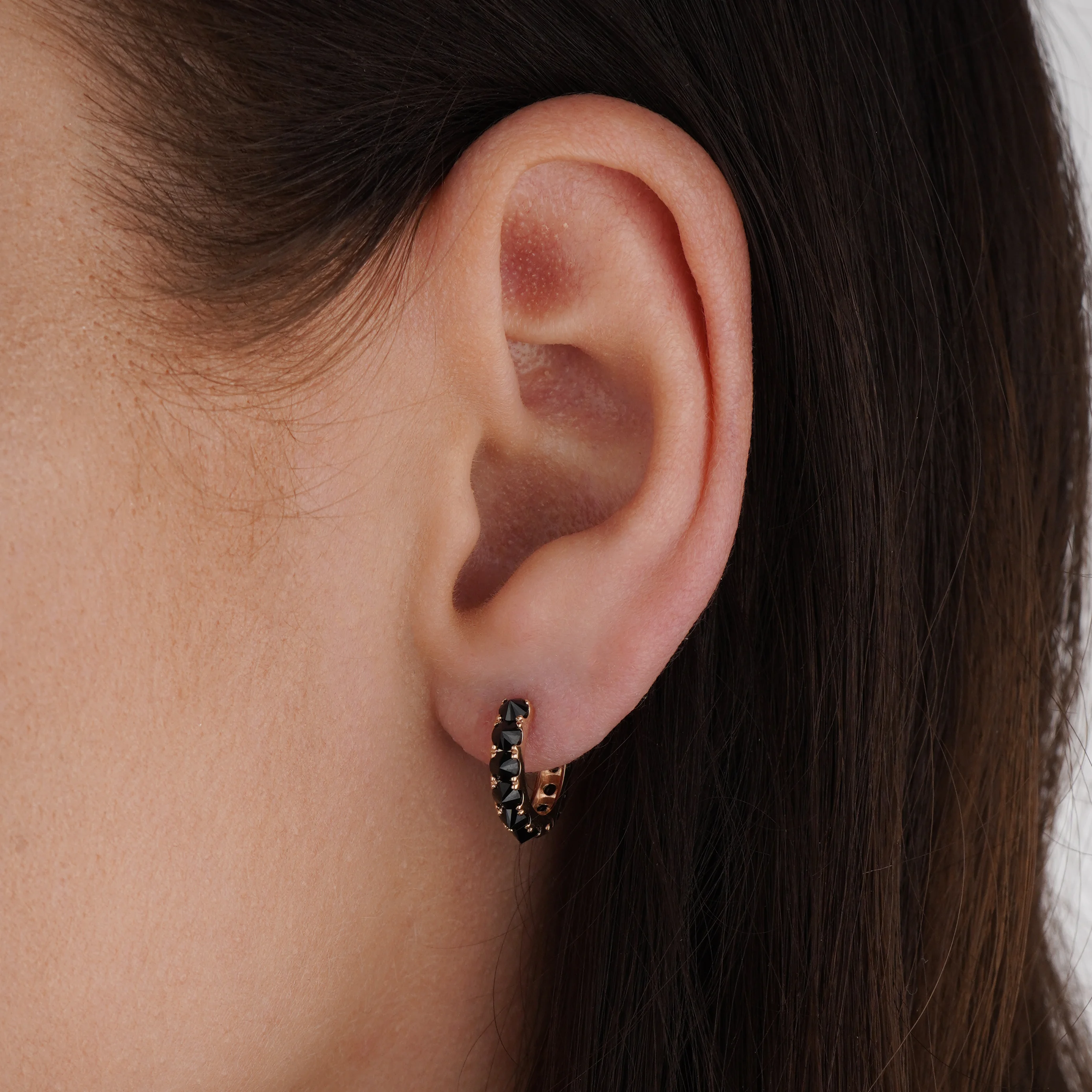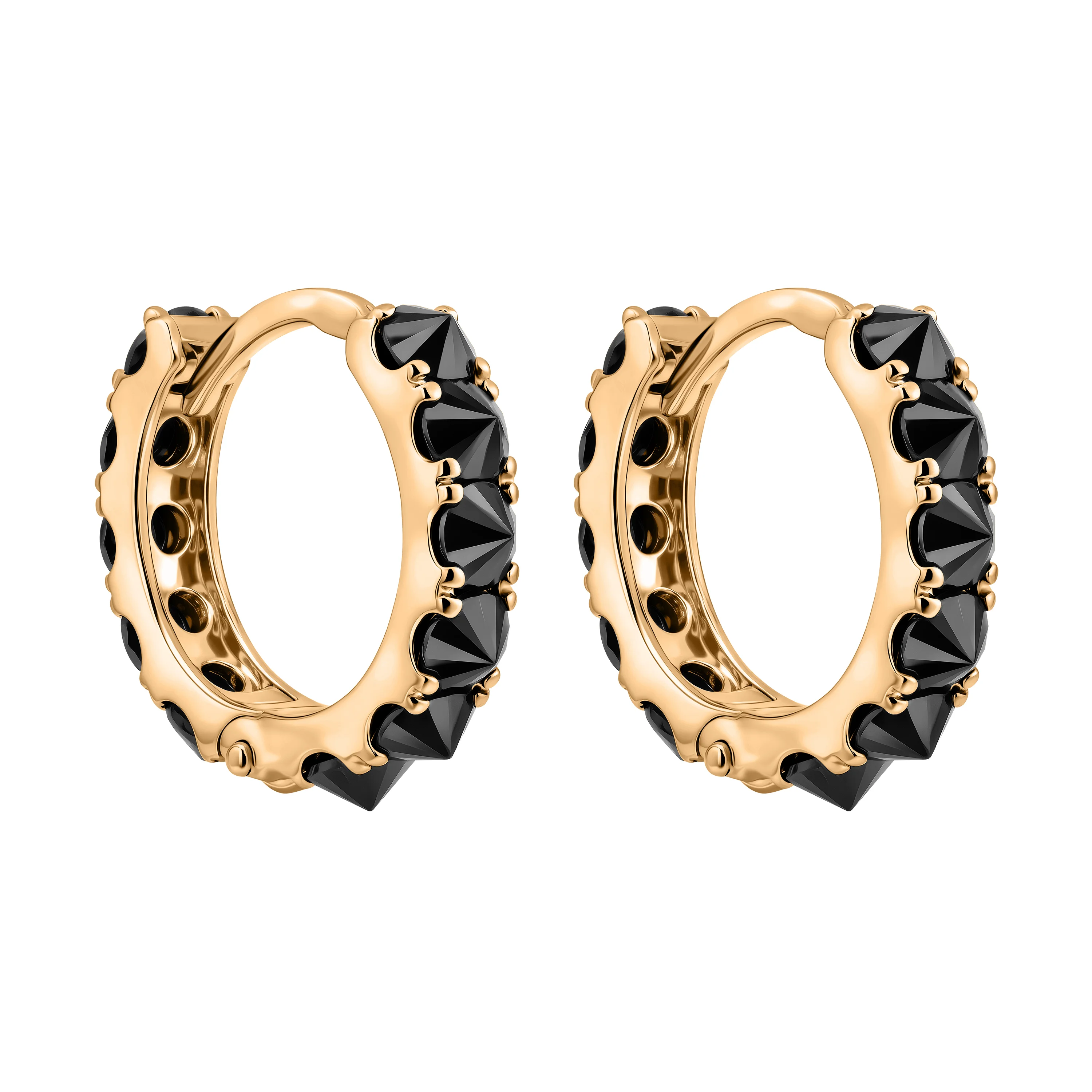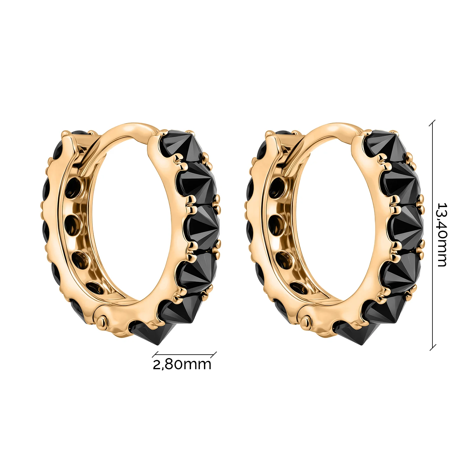 Сережки-кільця з червоного золота з доріжкою чорних фіанітів - 2193453