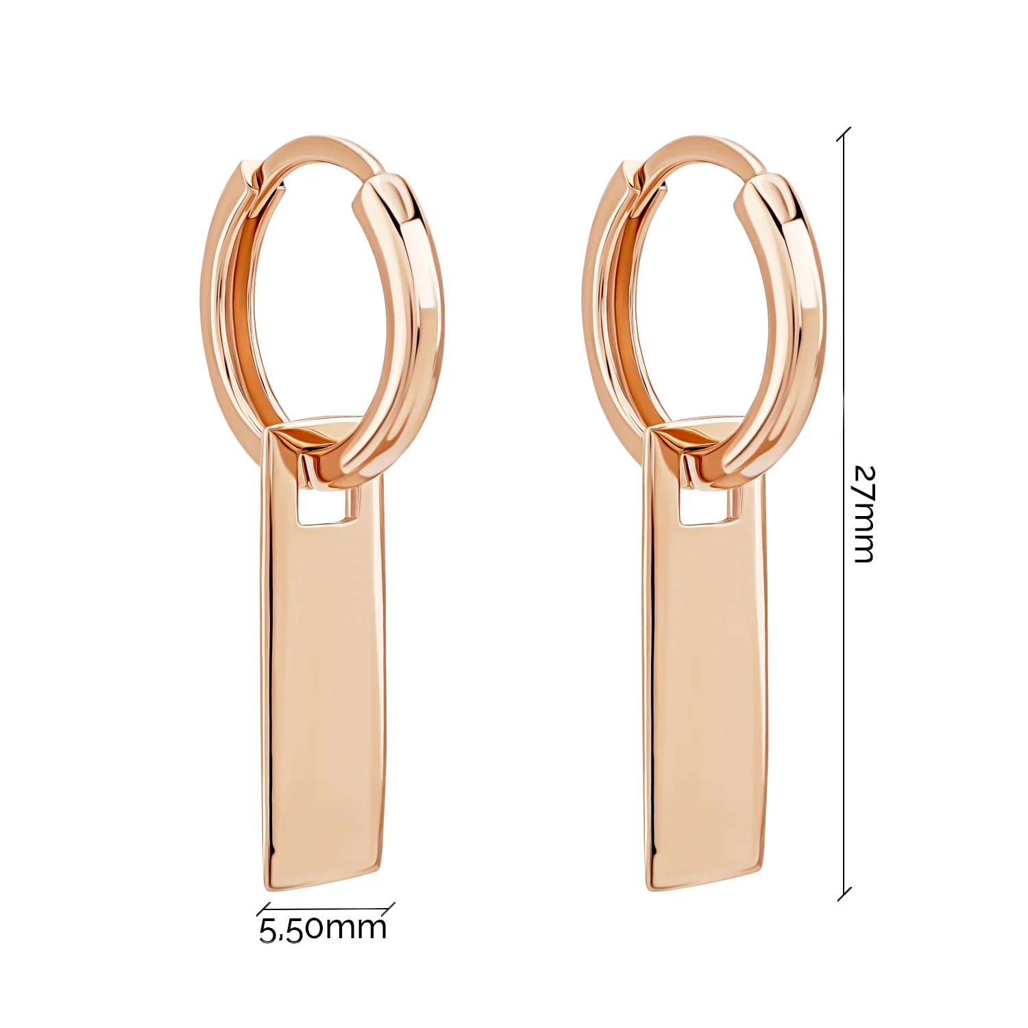 Сережки-кільця з червоного золота з підвісом - 2011362