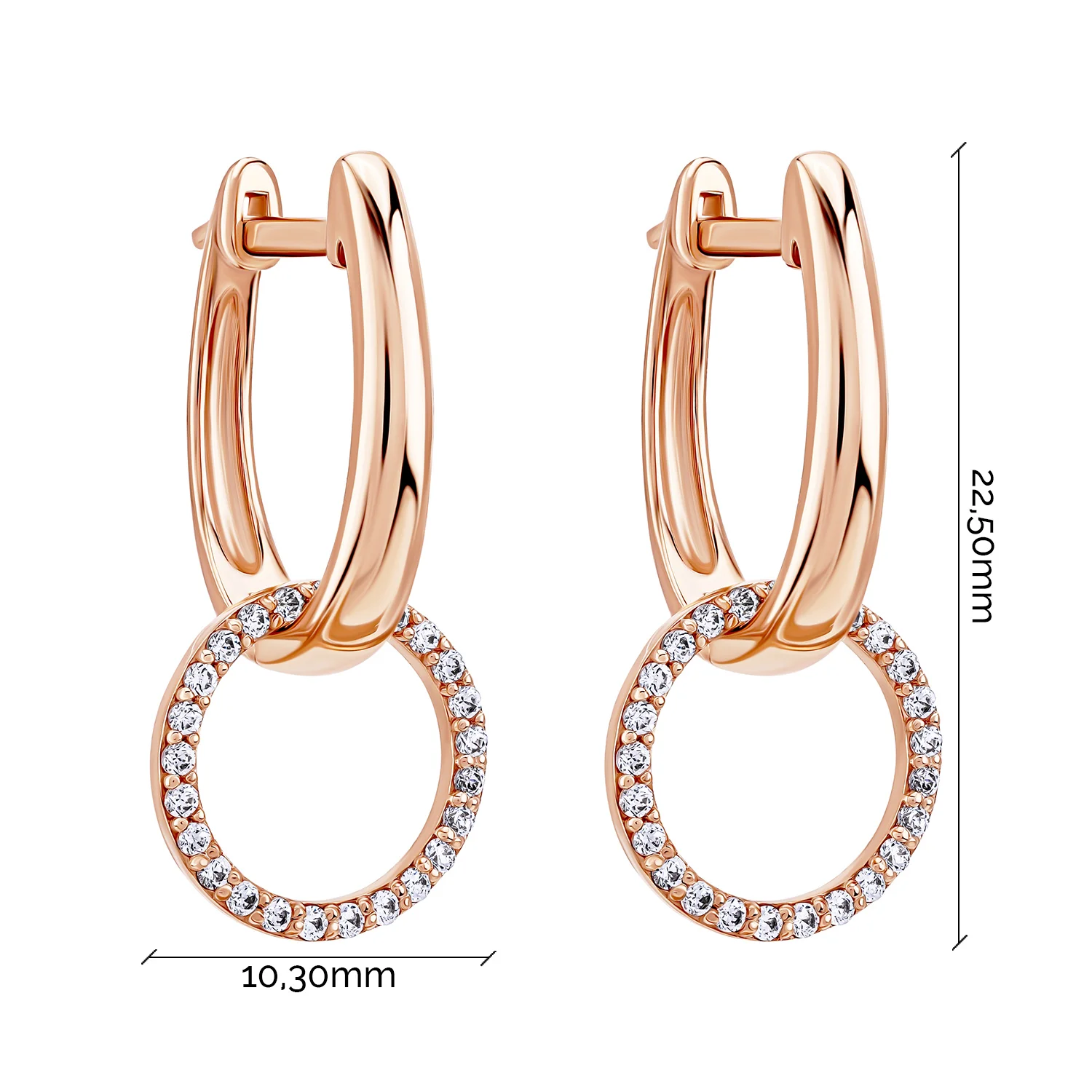Сережки-кільця з червоного золота з підвісом та доріжкою фіанітів - 1976842