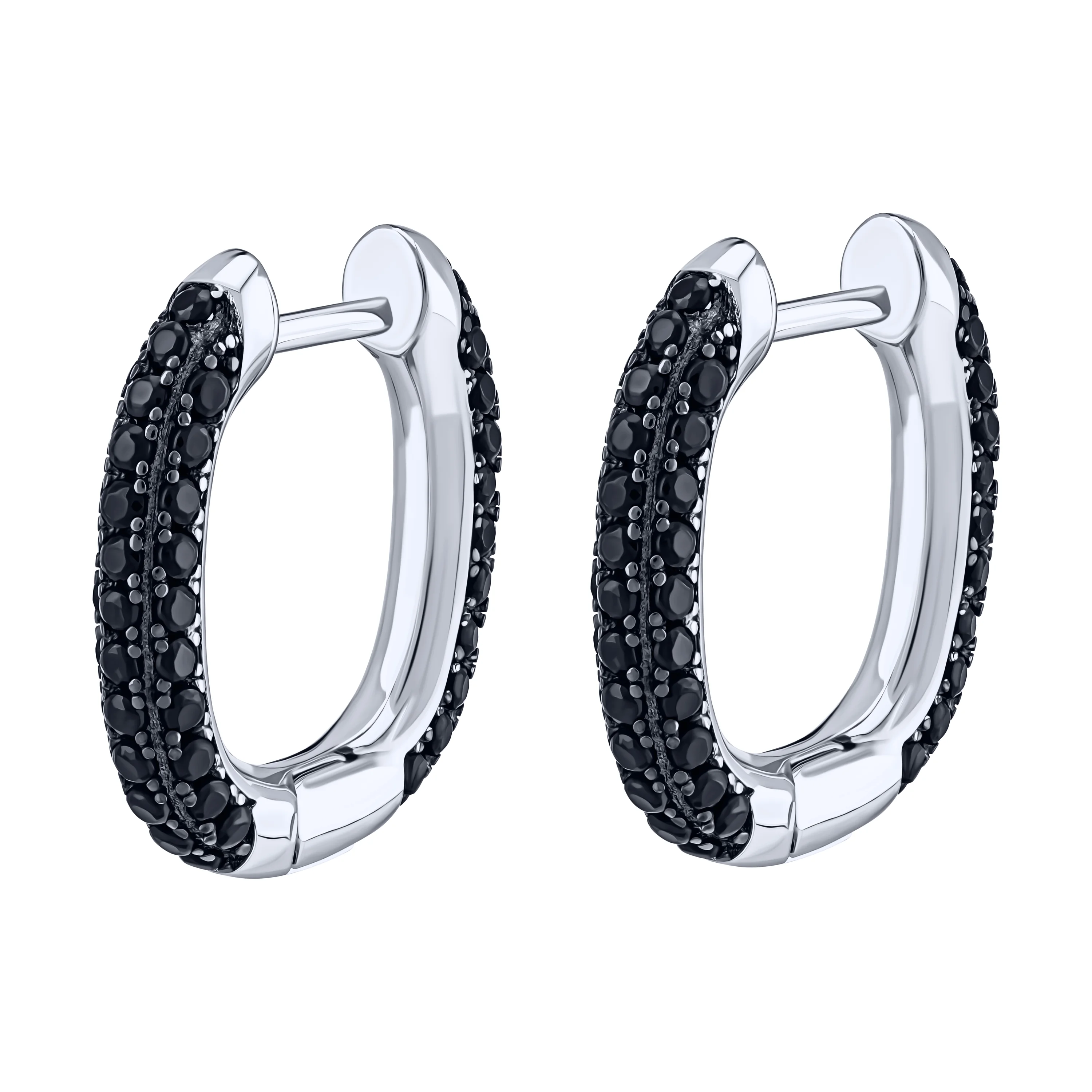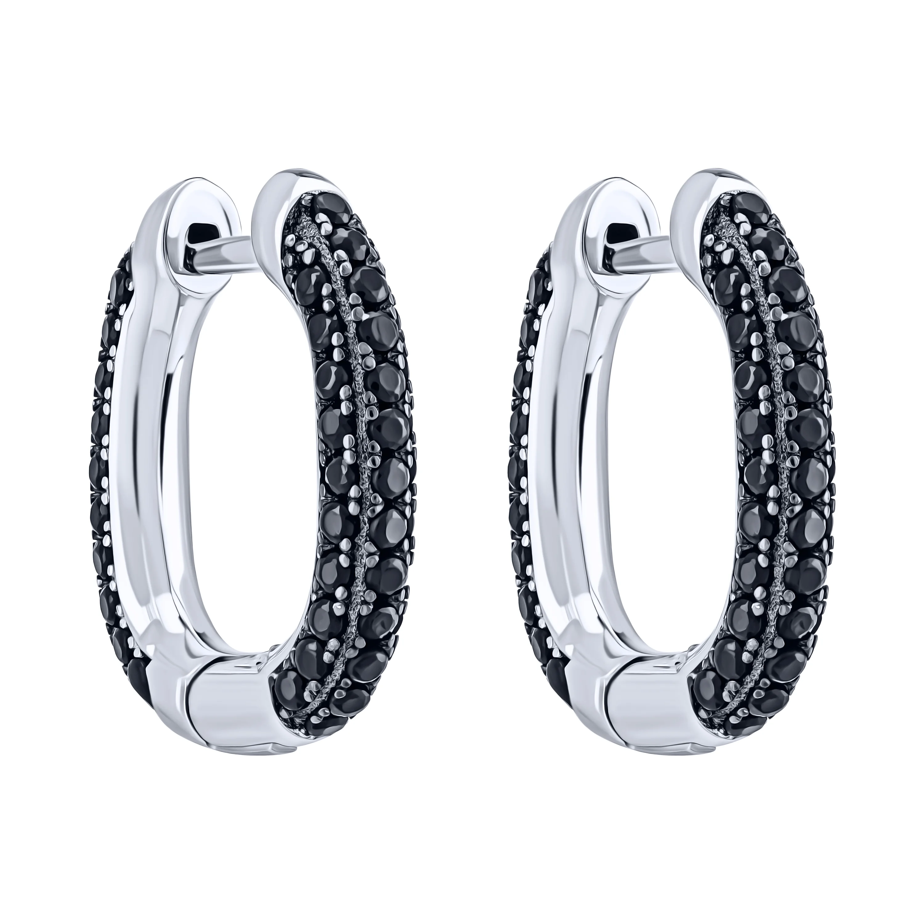 Сережки-кільця зі срібла з доріжками фіанітів - 2098492