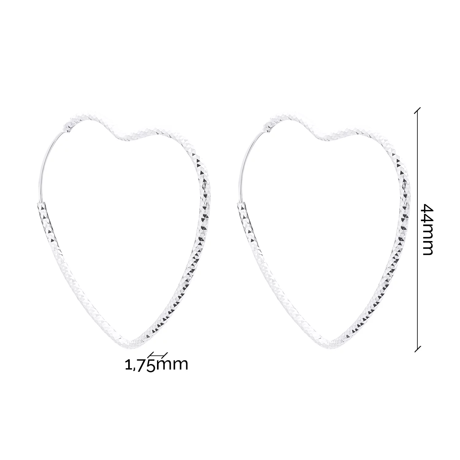 Сережки-кільця зі срібла у формі "Сердечка" з алмазною гранню - 1521036