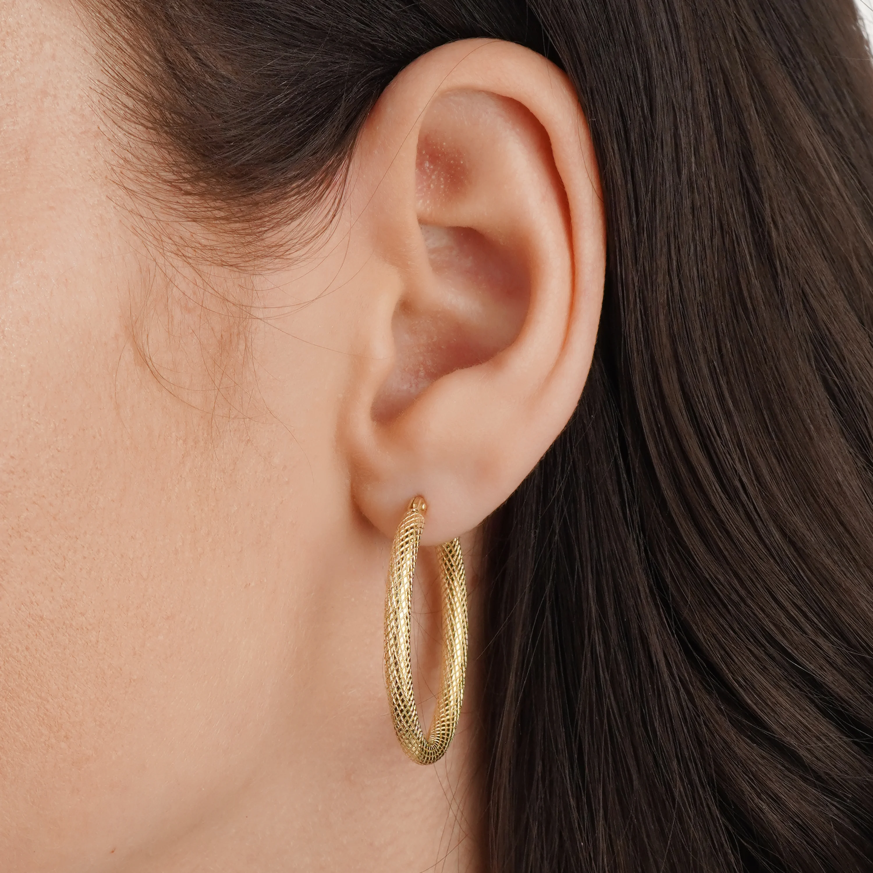 Сережки-кільця із жовтого золота з візерунком - 2129779