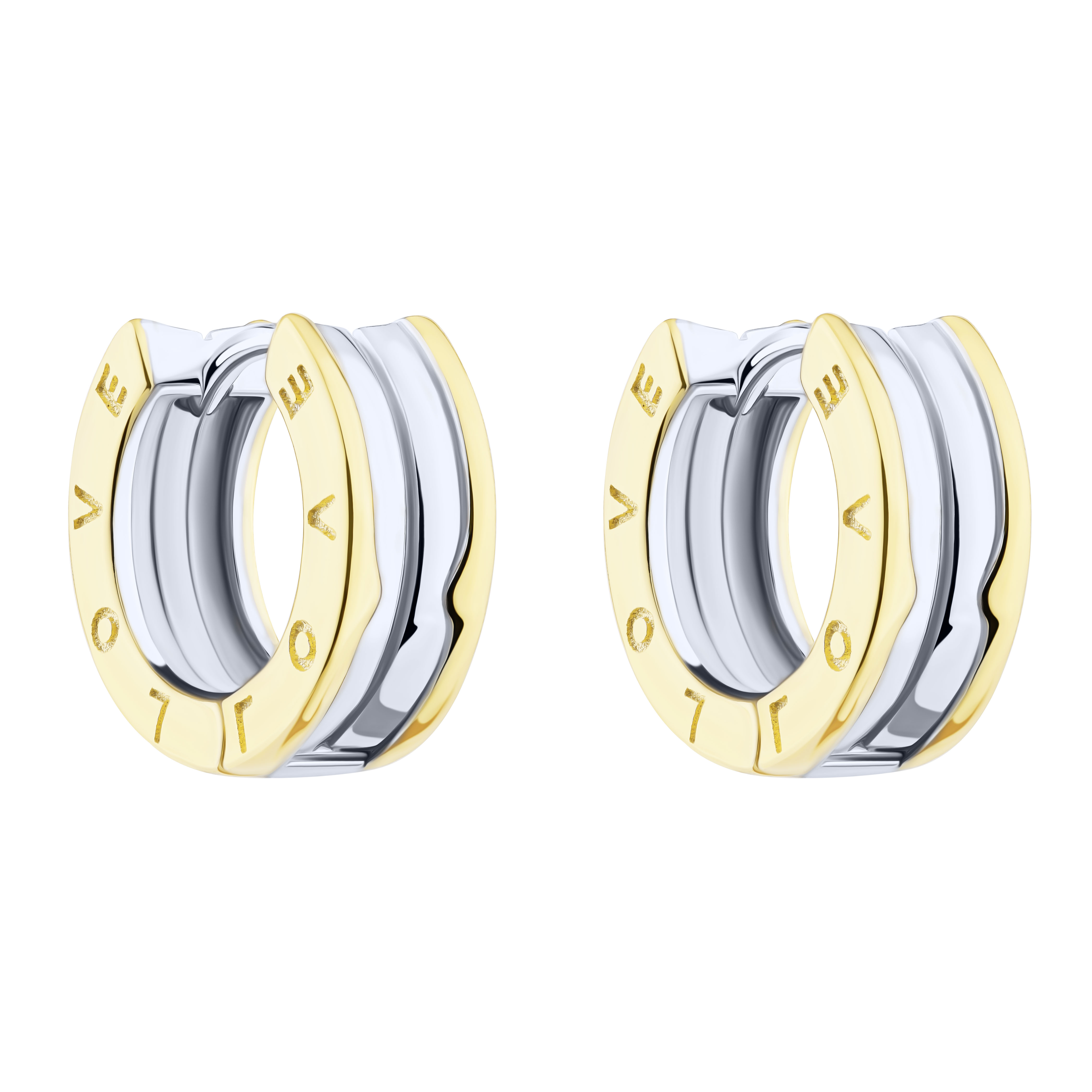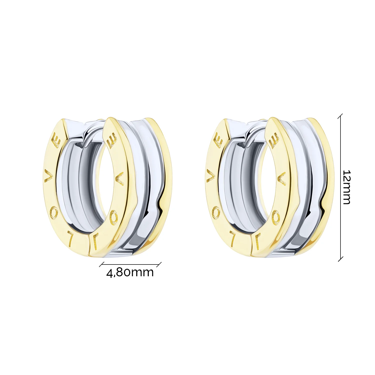 Сережки-кільця "Love" зі срібла з жовтим родіюванням - 2188743