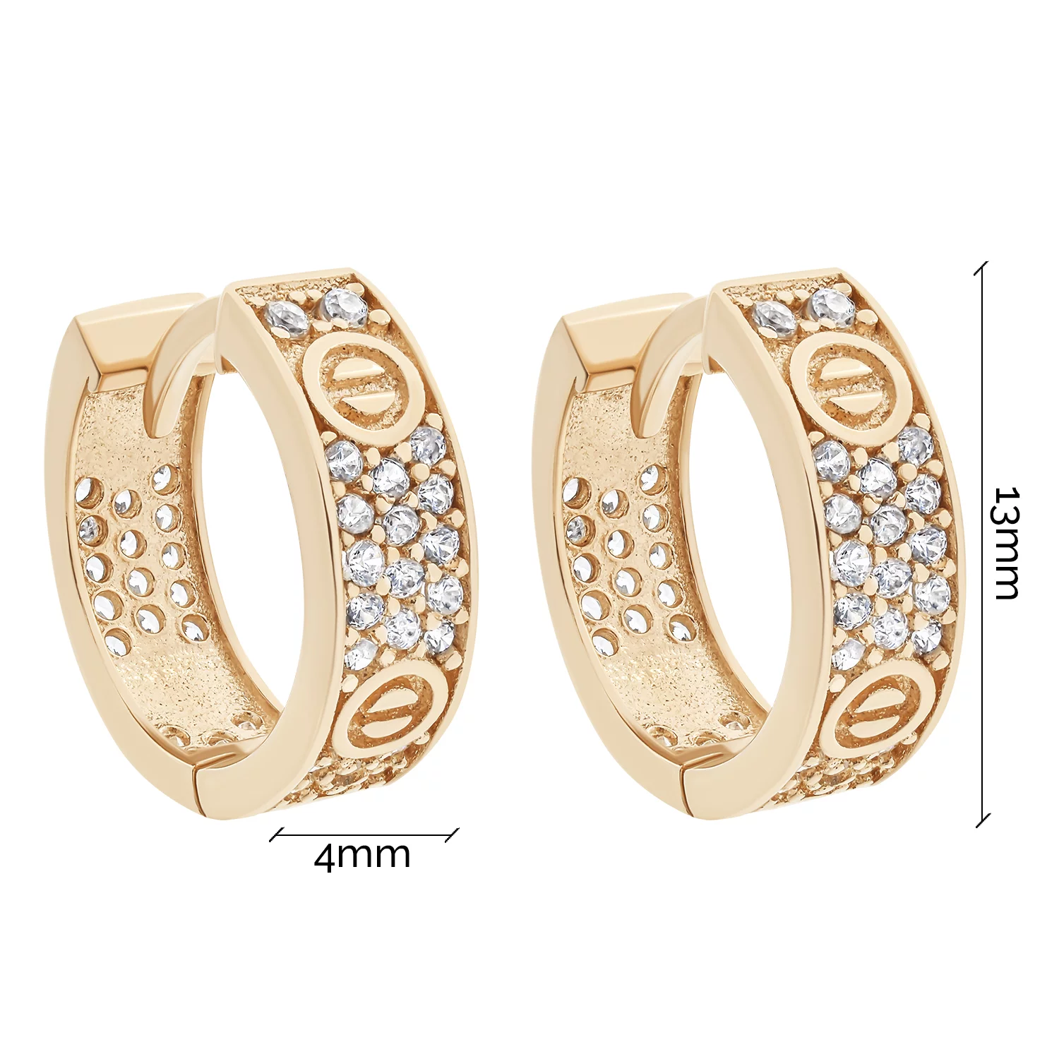 Сережки-кільця з червоного золота з підвісами "Пантера" з фіанітом - 1476753