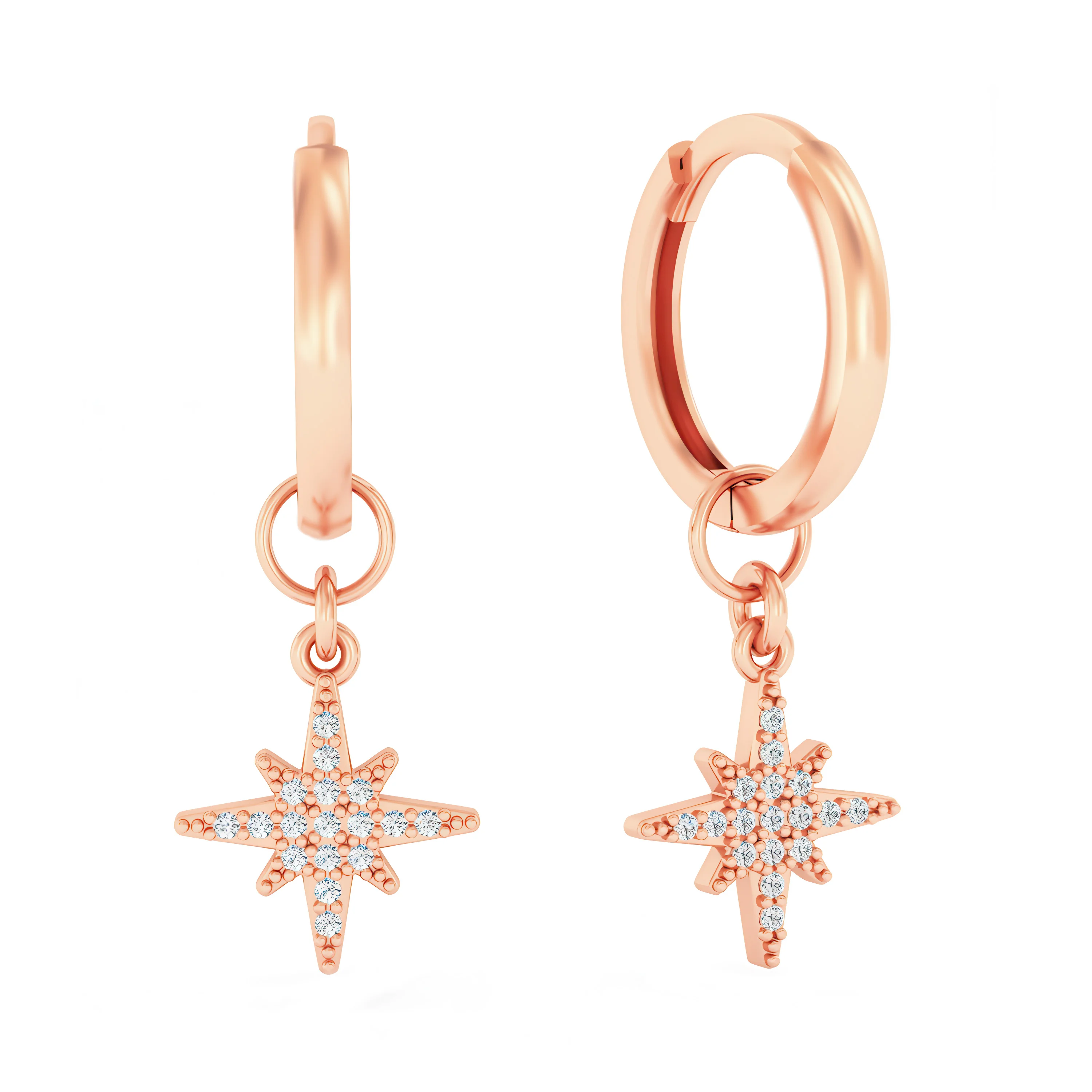 Сережки-кільця з підвісом "Зірка" із червоного золота з фіанітами - 2116885