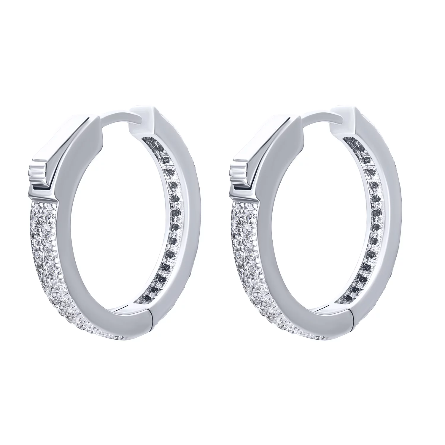 Сережки-кільця срібні з фіанітами - 1679731