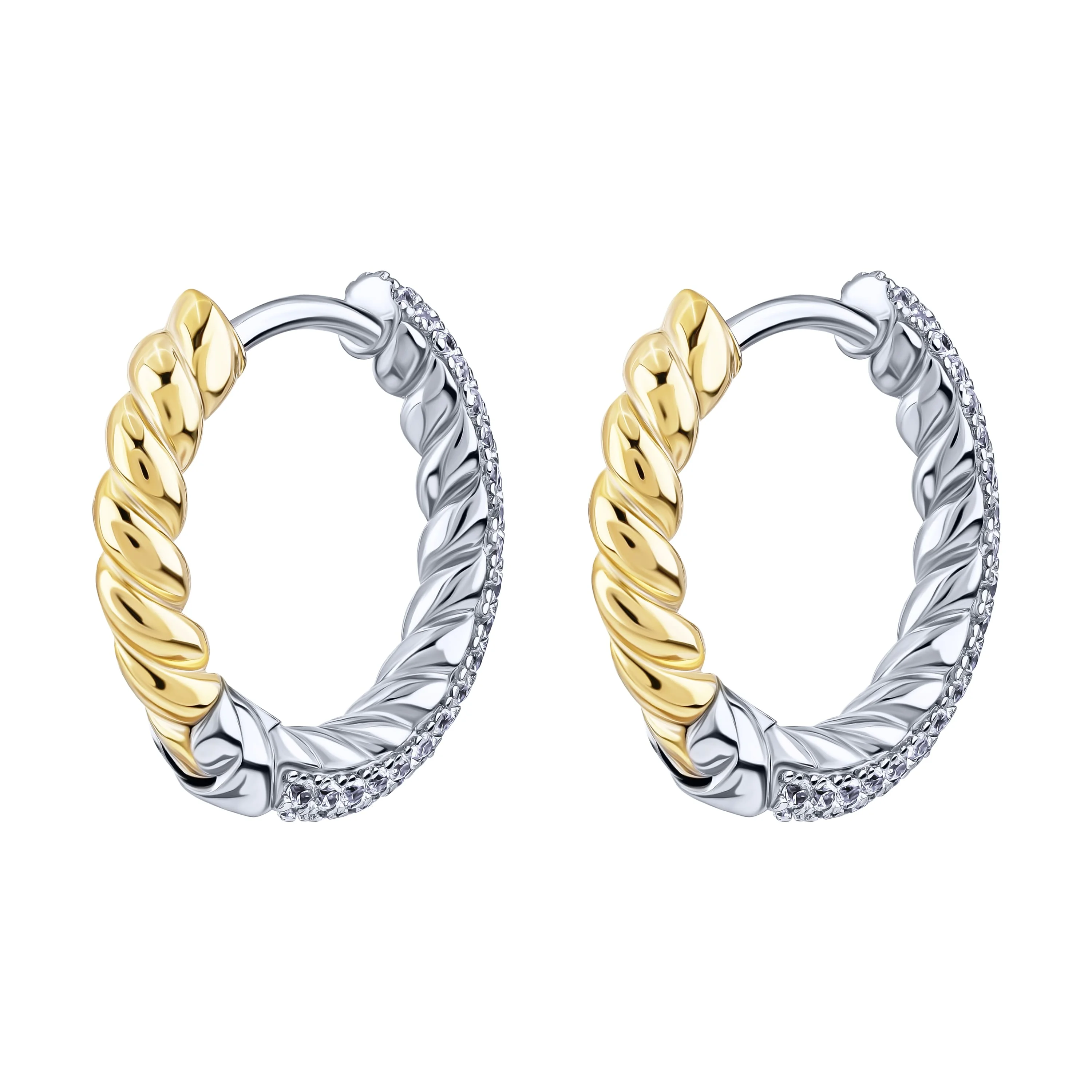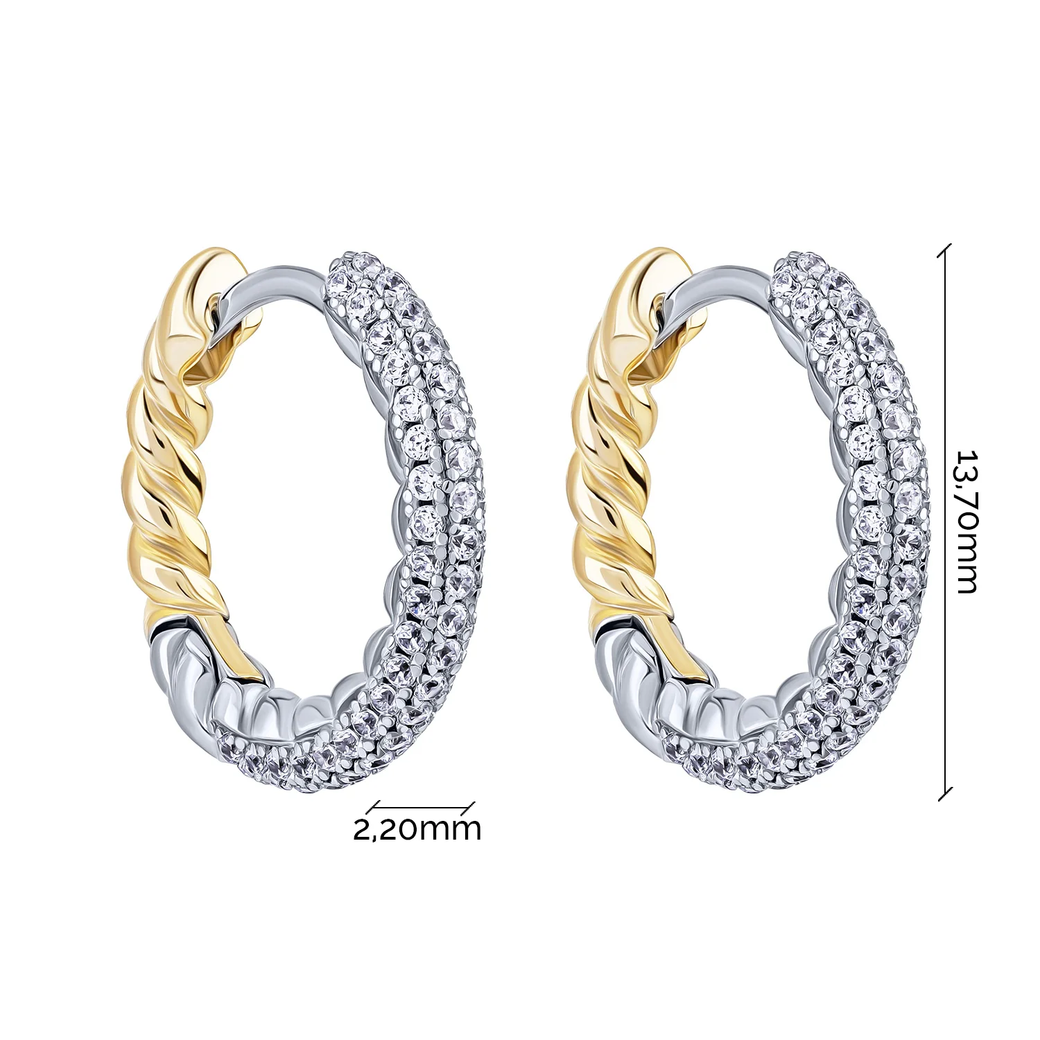 Сережки-кільця у сріблі "Спіраль" з комбінованим родіюванням та фіанітами - 1989829