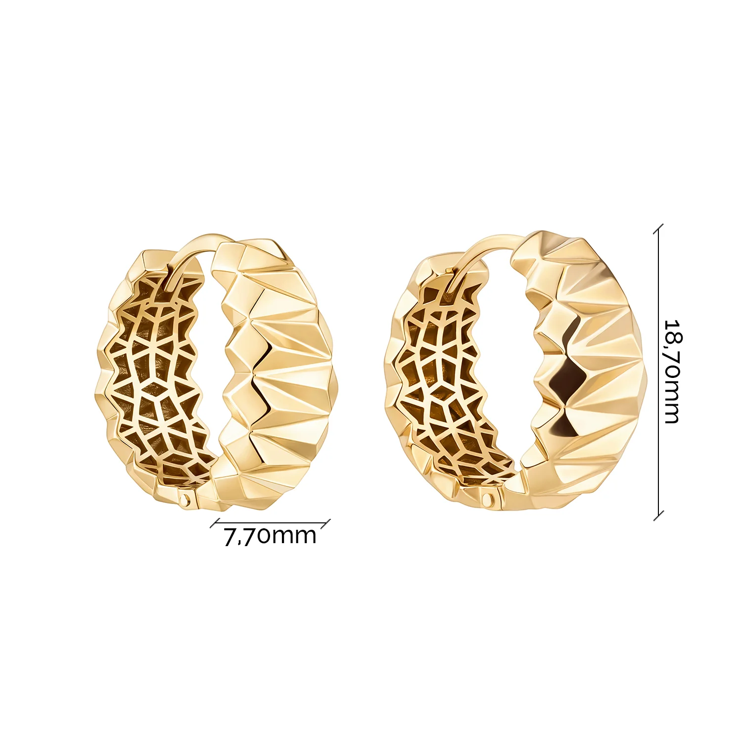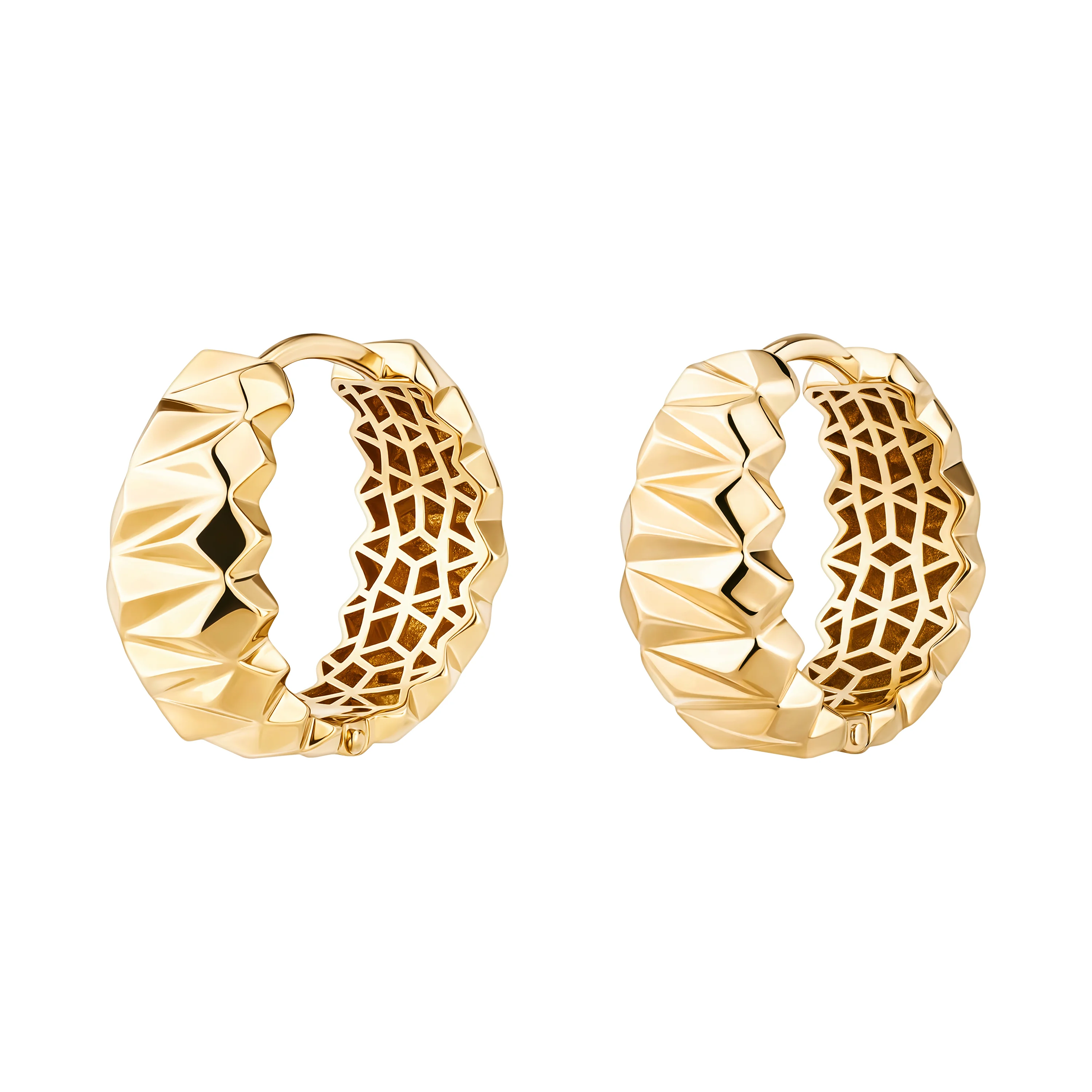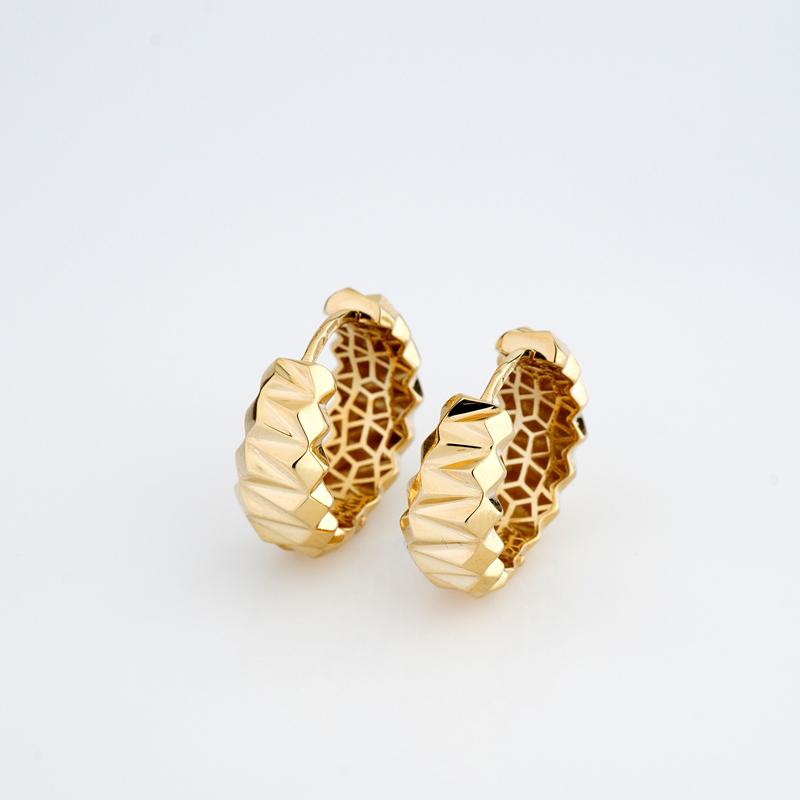 Сережки-кільця у жовтому золоті з гранями - 2139700