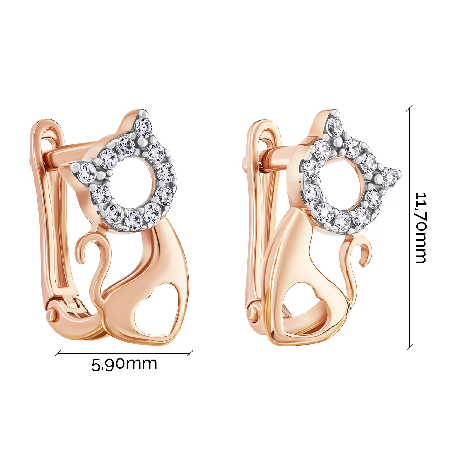 Сережки-кільця з червоного золота з підвісами "Пантера" з фіанітом - 1476753