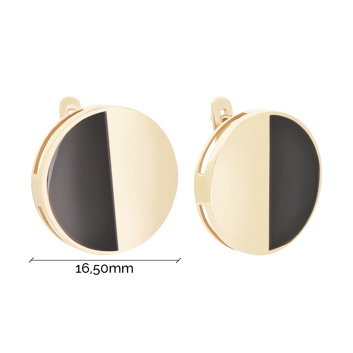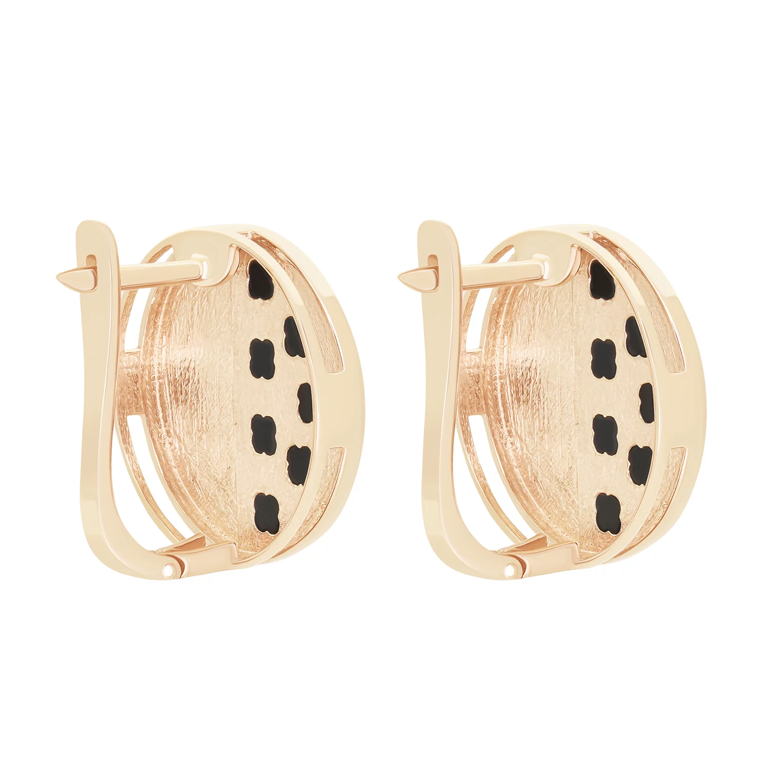 Елегантні сережки-гвоздики "Кулі" у червоному золоті з емаллю - 1926551