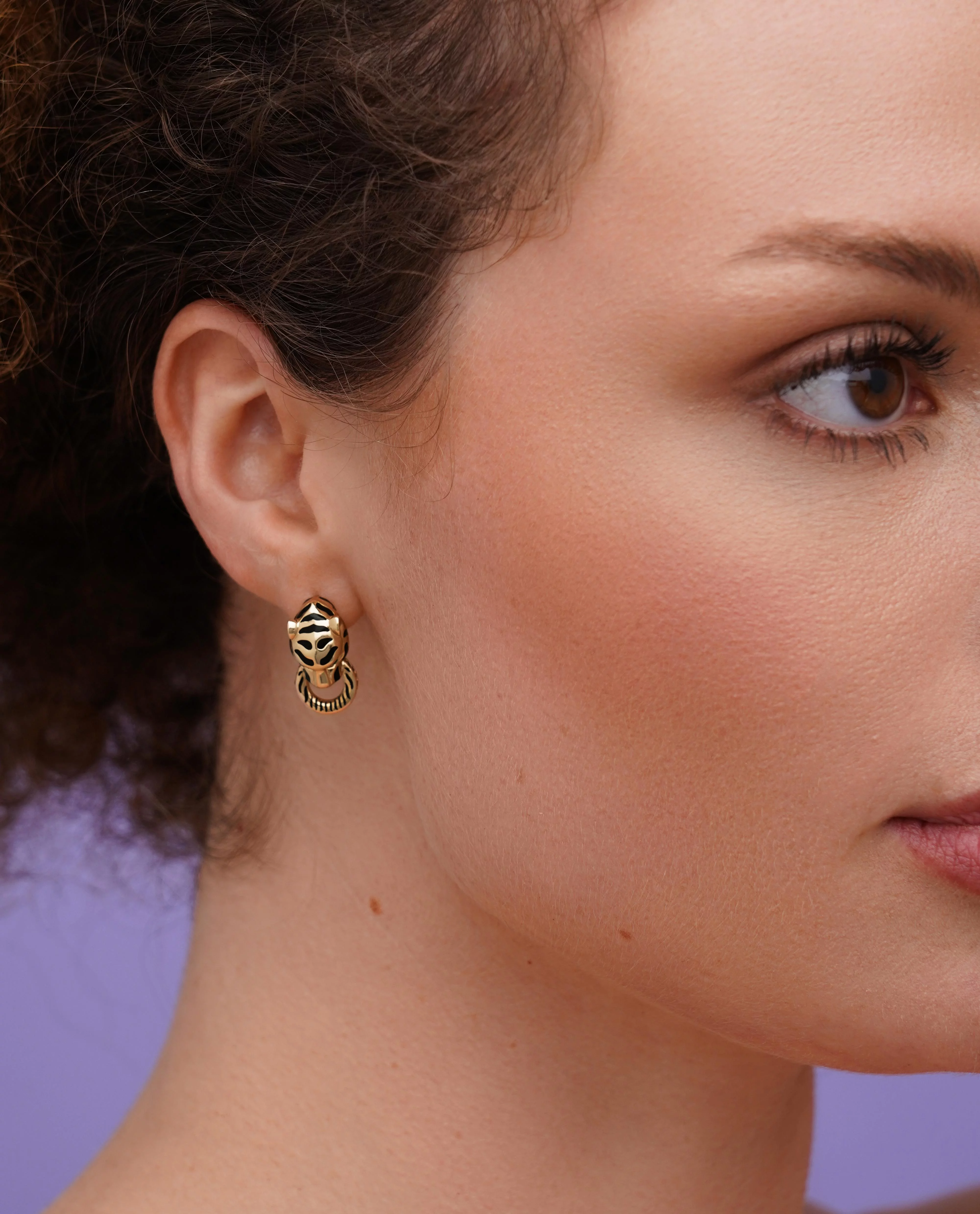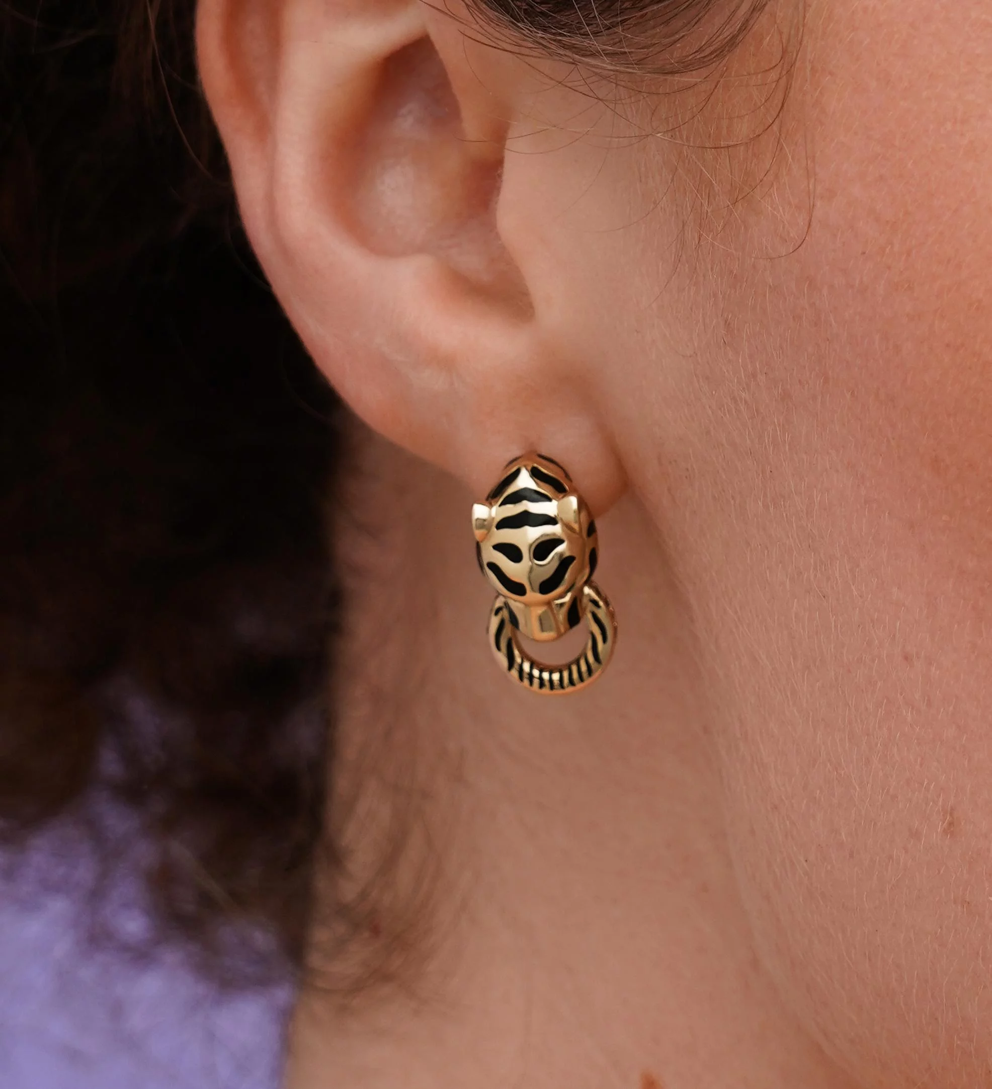 Сережки-кільця з червоного золота з підвісами "Пантера" з фіанітом - 1476753