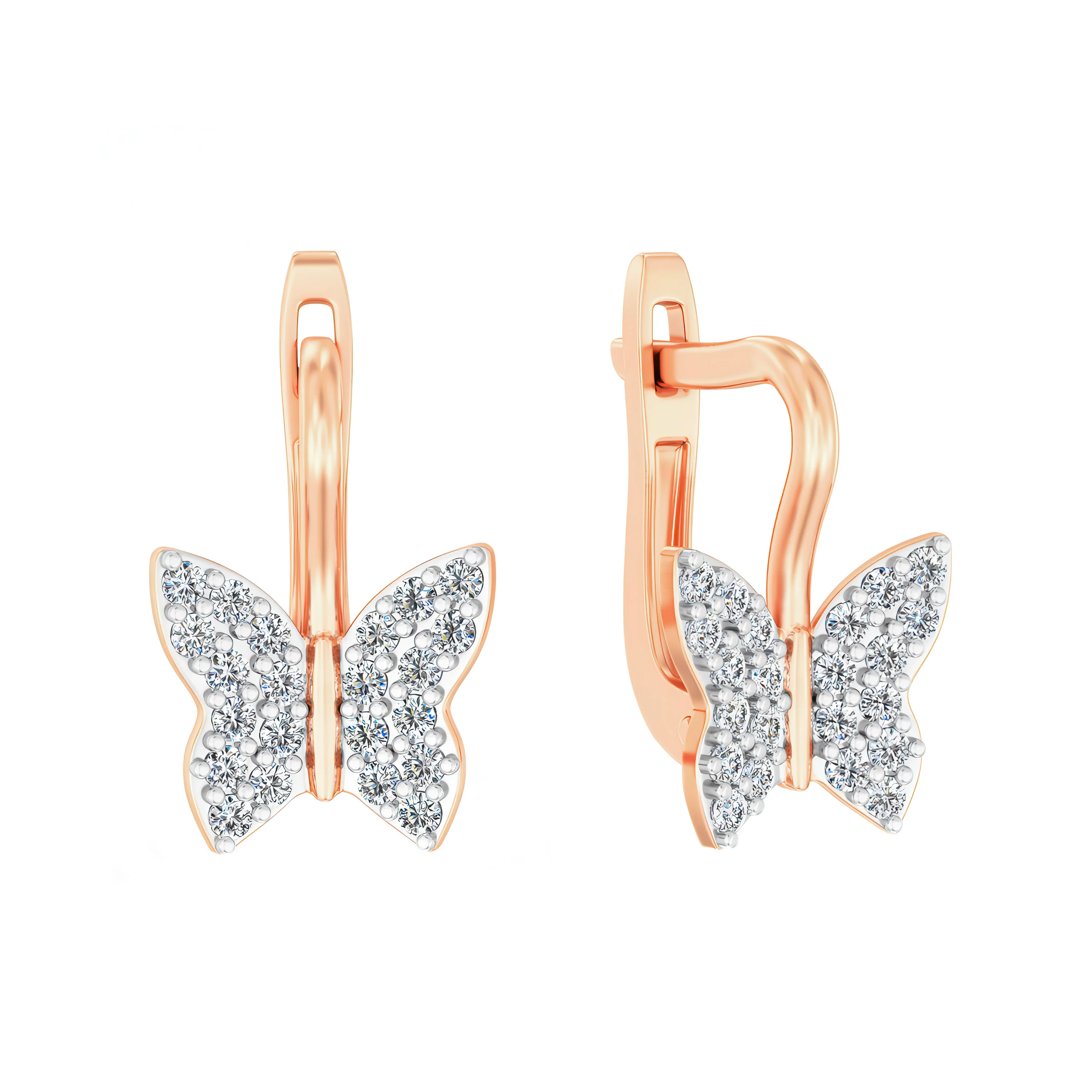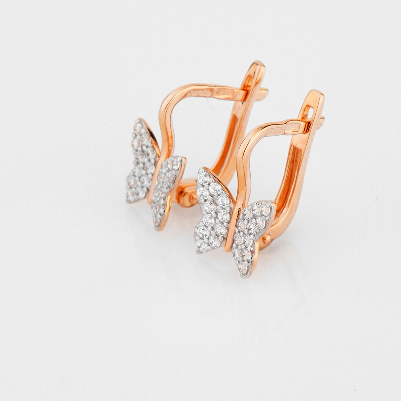 Дитячі сережкиі "Метелик" з комбінованого золота з фіанітами - 2116973
