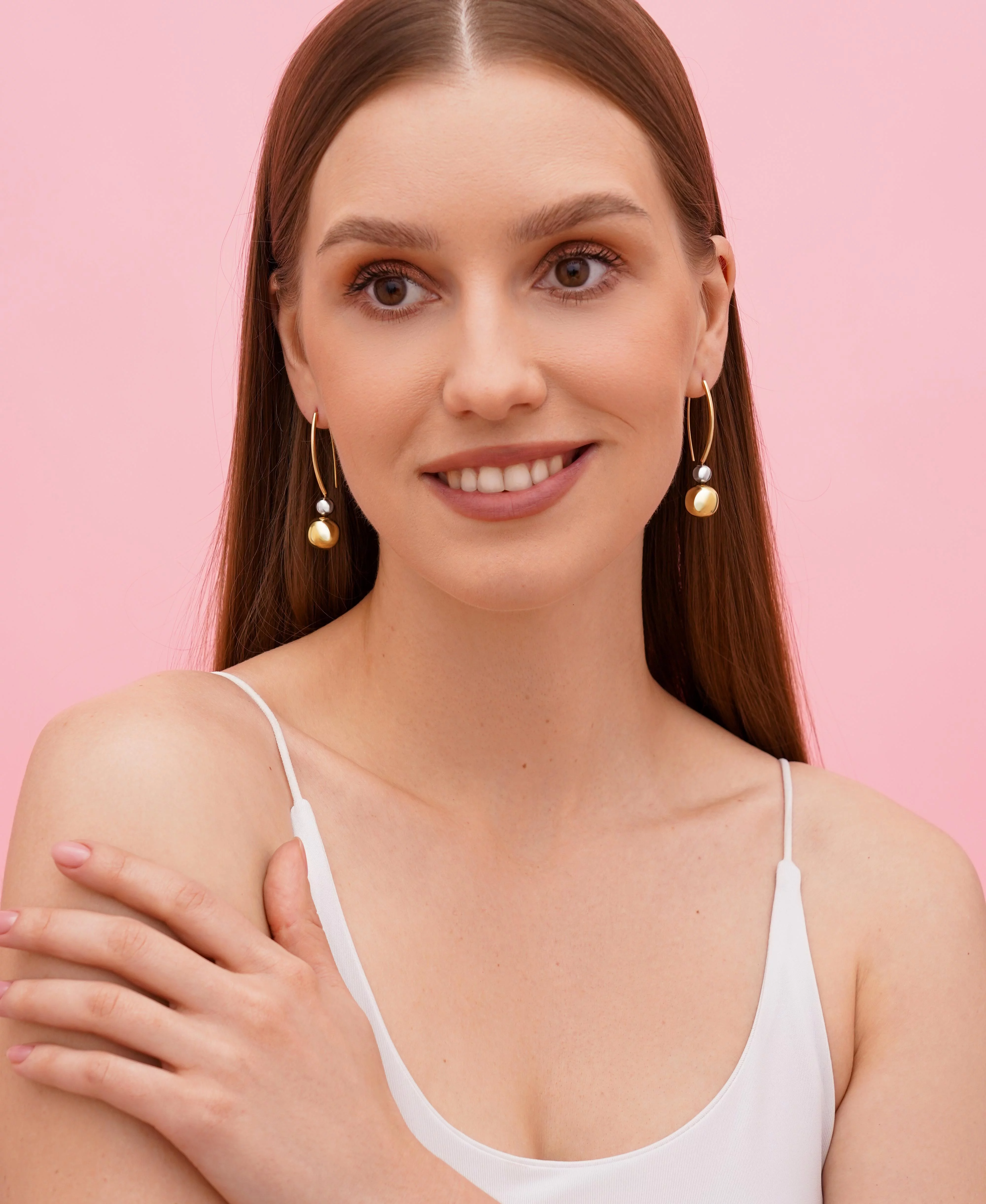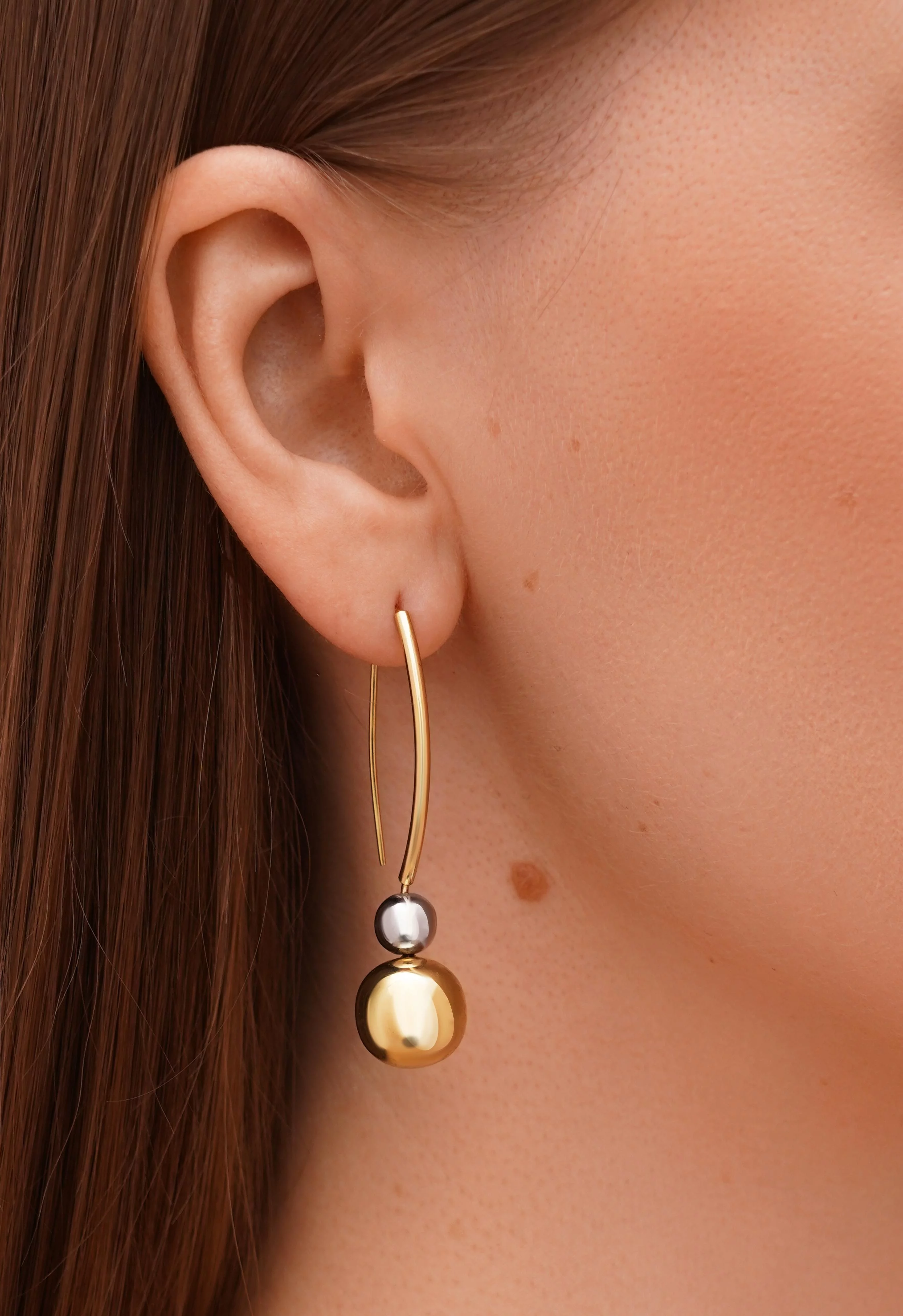 Сережки-петлі "Кульки" з лимонного та білого золота - 1551285