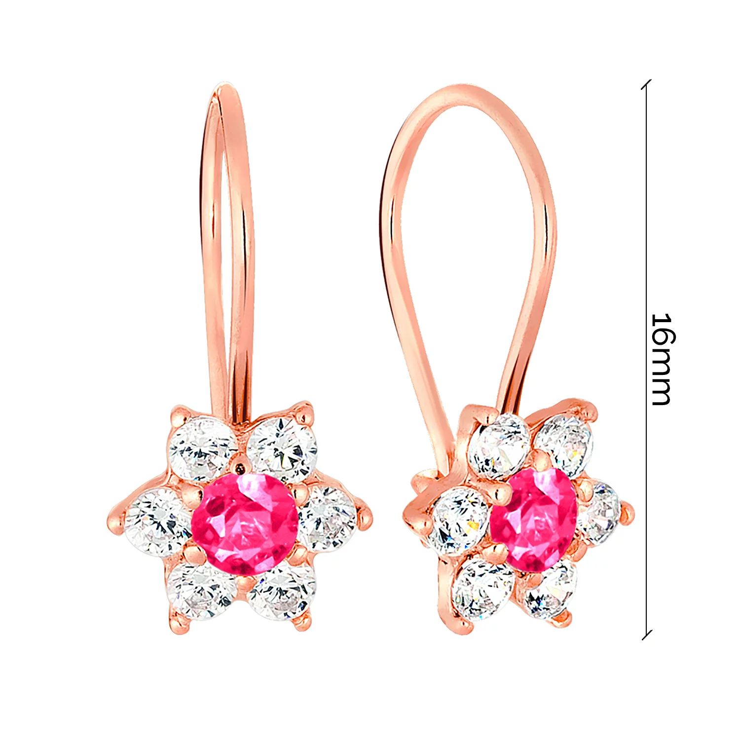 Сережки-петлі "Квіточка" з червоного золота з фіанітом - 1504830