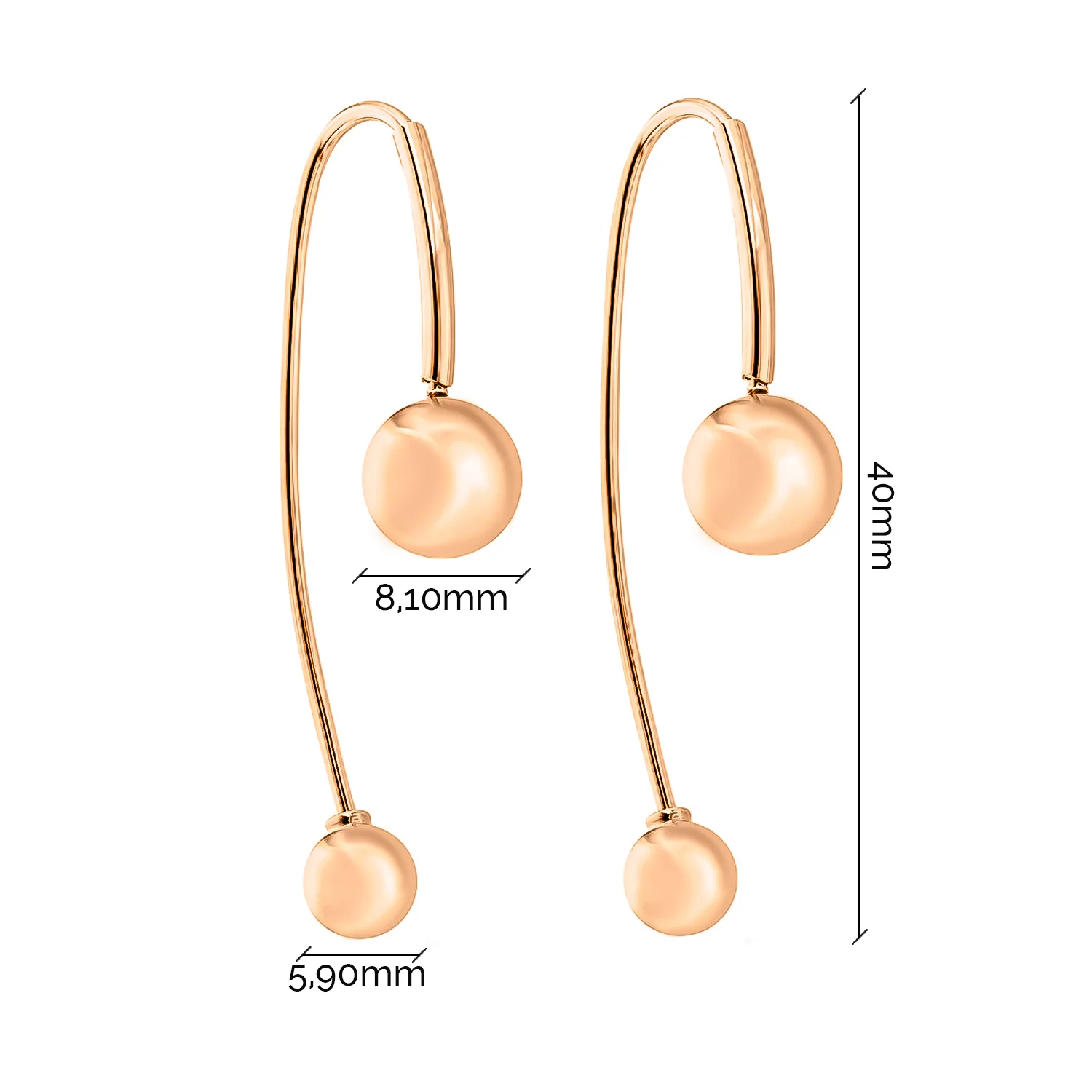 Сережки-петлі "Кулі" в мінімалістичному стилі з комбінованого золота - 1872723
