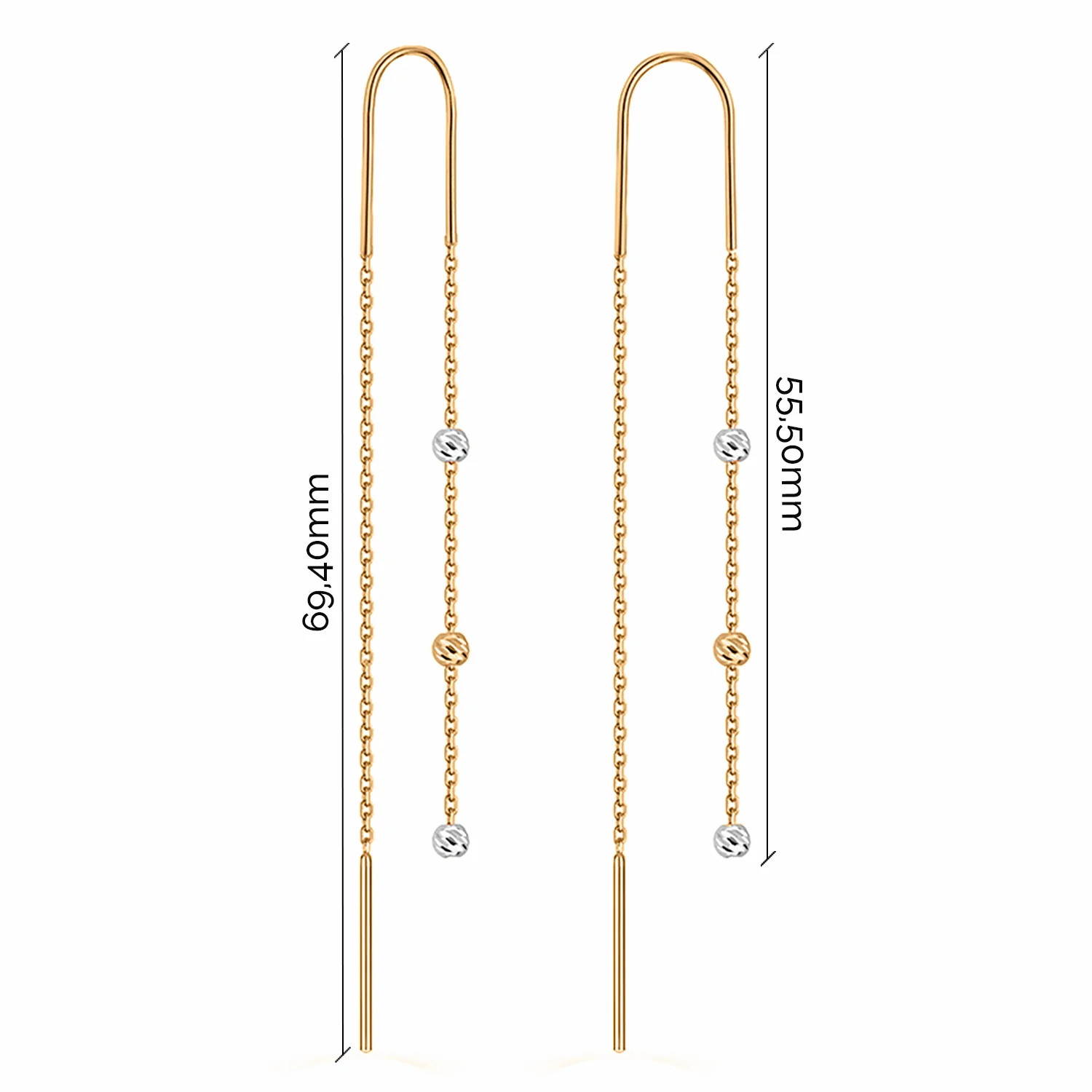 Сережки-петлі "Кулі" в мінімалістичному стилі з комбінованого золота - 1872723
