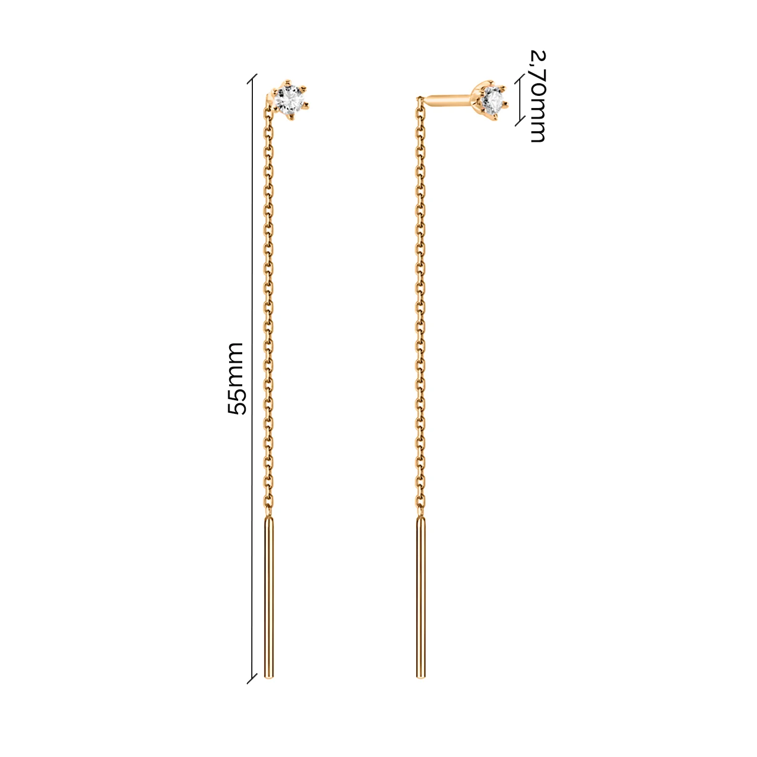 Сережки-протяжки в класичному стилі з червоного золота з діамантами - 1873989