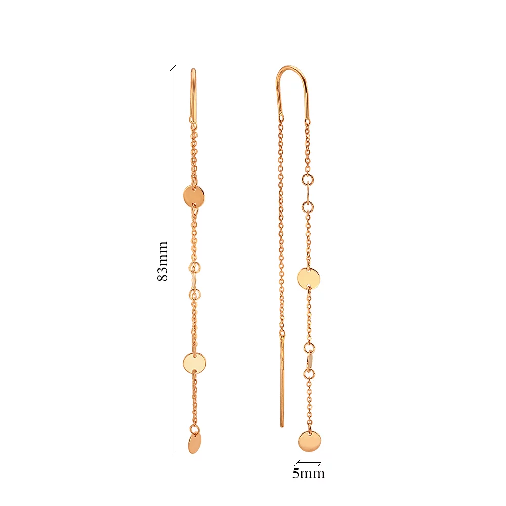 Сережки-протяжки з червоного золота з підвісами "Монетки" - 1443551