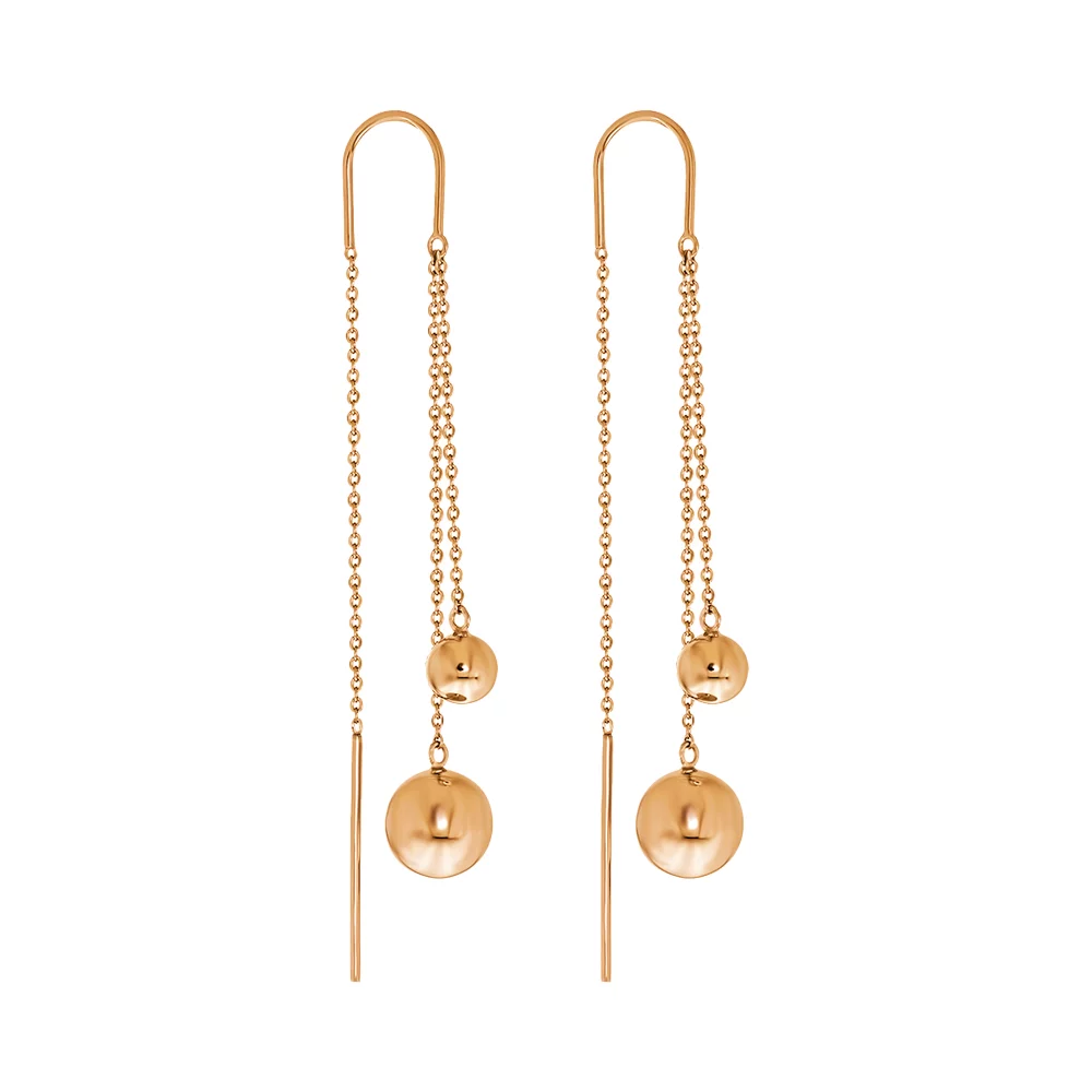 Елегантні сережки-гвоздики з підвісом в геометричному стилі з комбінованого золота - 1918777