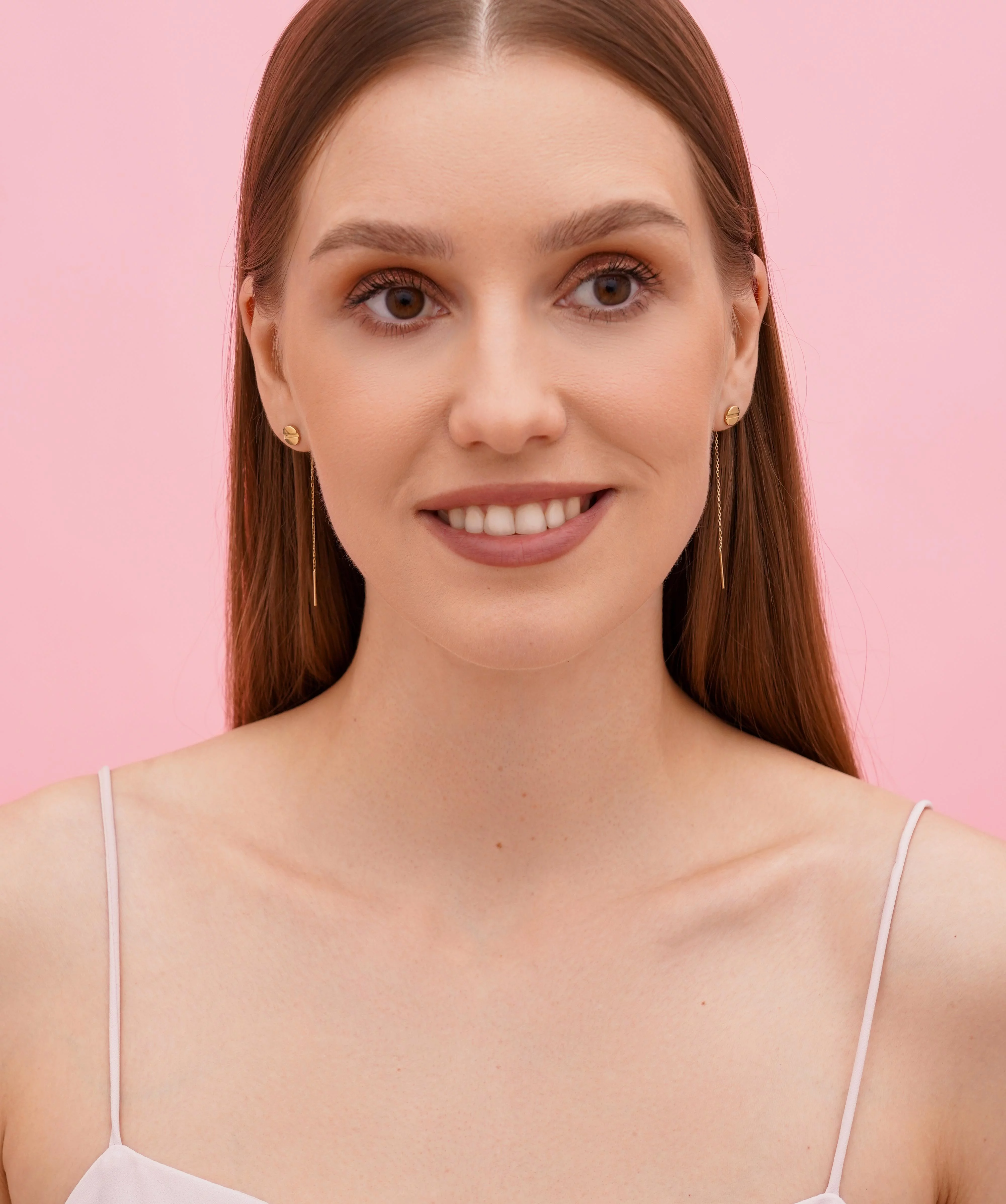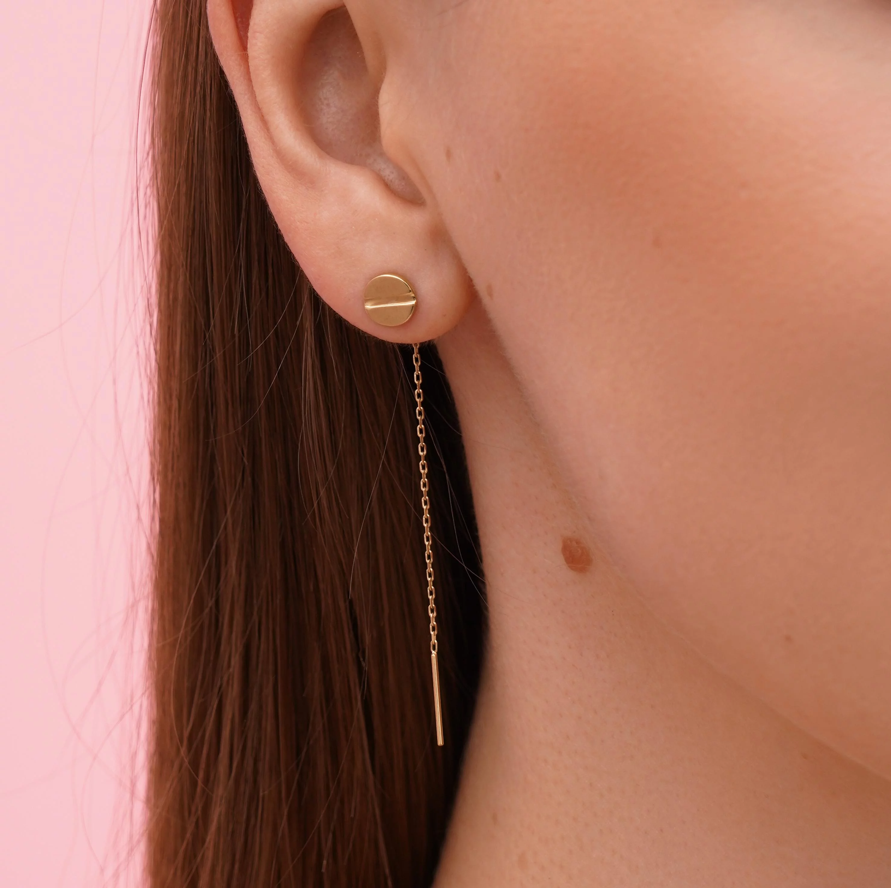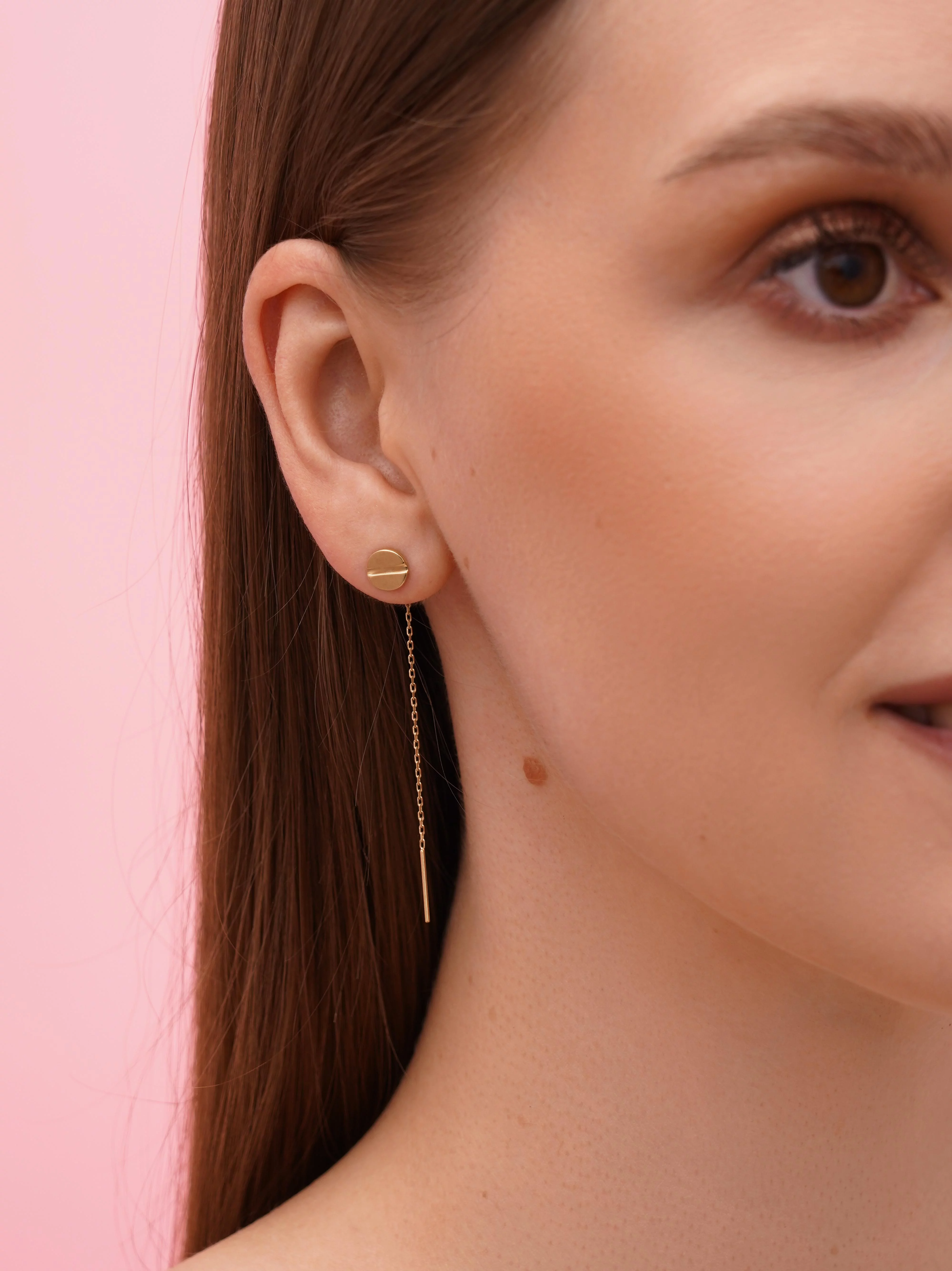 Сережки-протяжки із золота "Love" у формі монетки - 1552270