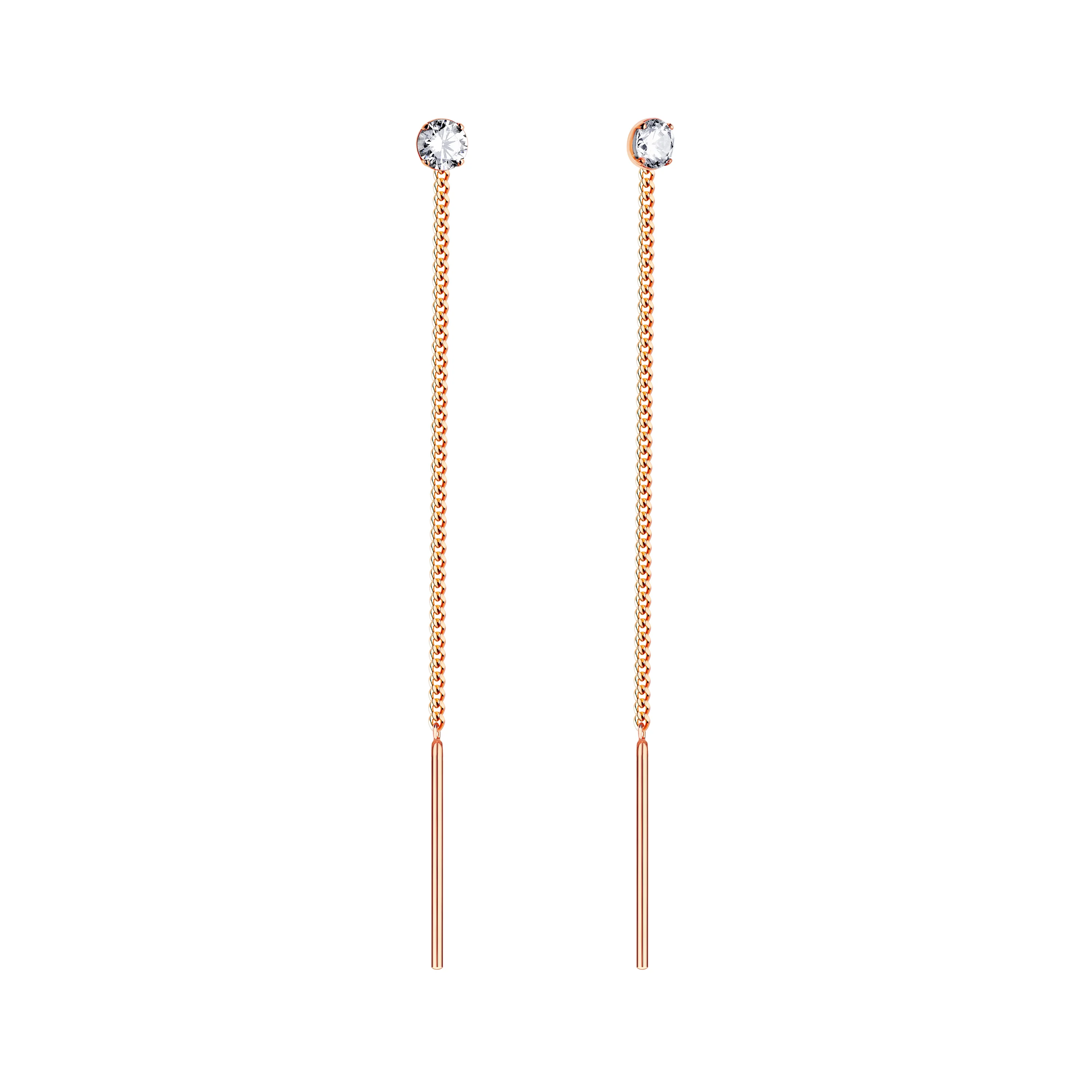 Сережки-протяжки з фіанітом у червоному золоті - 2115242