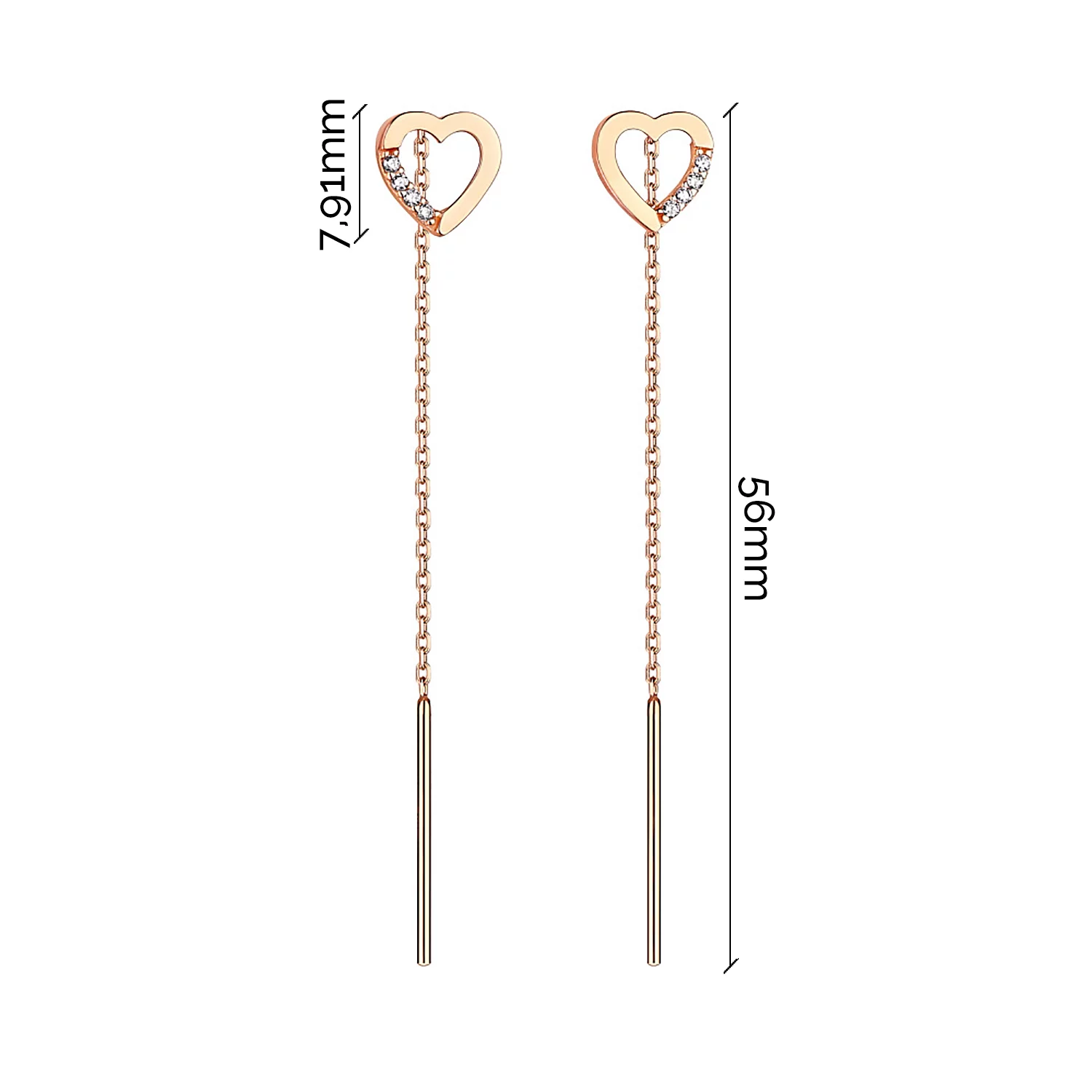 Елегантні сережки-гвоздики у формі серця з червоного золота з фіанітами - 1877491
