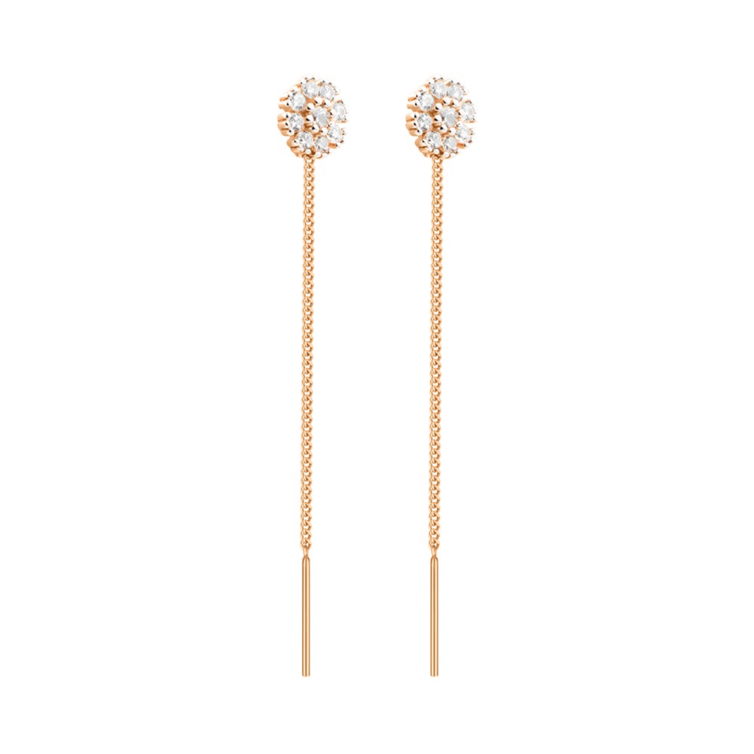Сережки-протяжки "Квітка" із червоного золота з фіанітами - 2120761