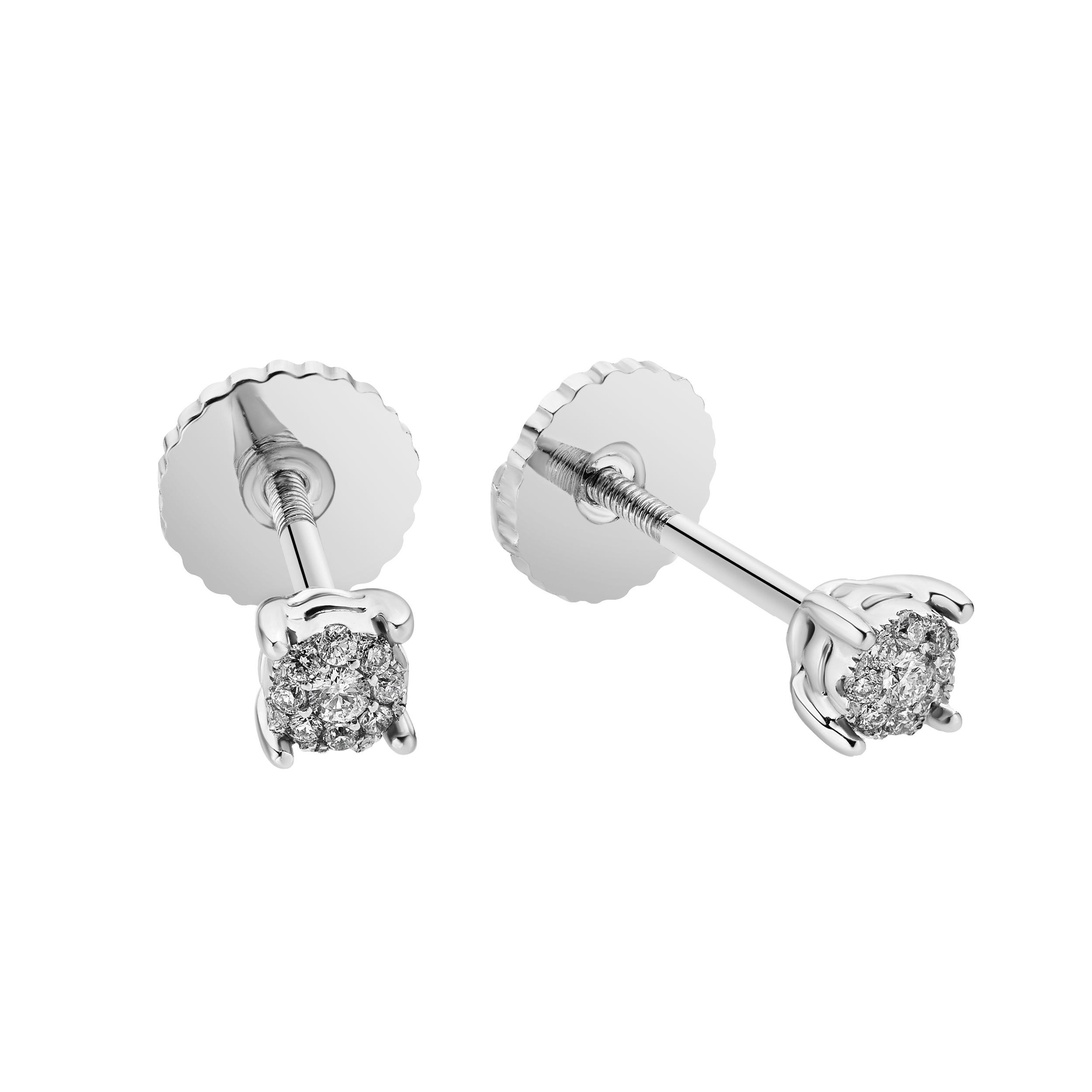 Сережки-пусети з білого золота з діамантами - це вибір для тих, хто шукає максимальну концентрацію блиску в мінімальному об'ємі. Замість одного центрального акценту тут працює ціле поле діамантового розсипу, де кожен камінь підсилює сяйво сусіднього, створюючи ефект сліпучого спалаху. Замок у цих пусетах заслуговує окремої уваги — це класичний затискач-метелик, який цінують за простоту та ідеальну посадку. На відміну від громіздких гвинтів, він дозволяє самостійно регулювати силу притискання сережки до мочки.