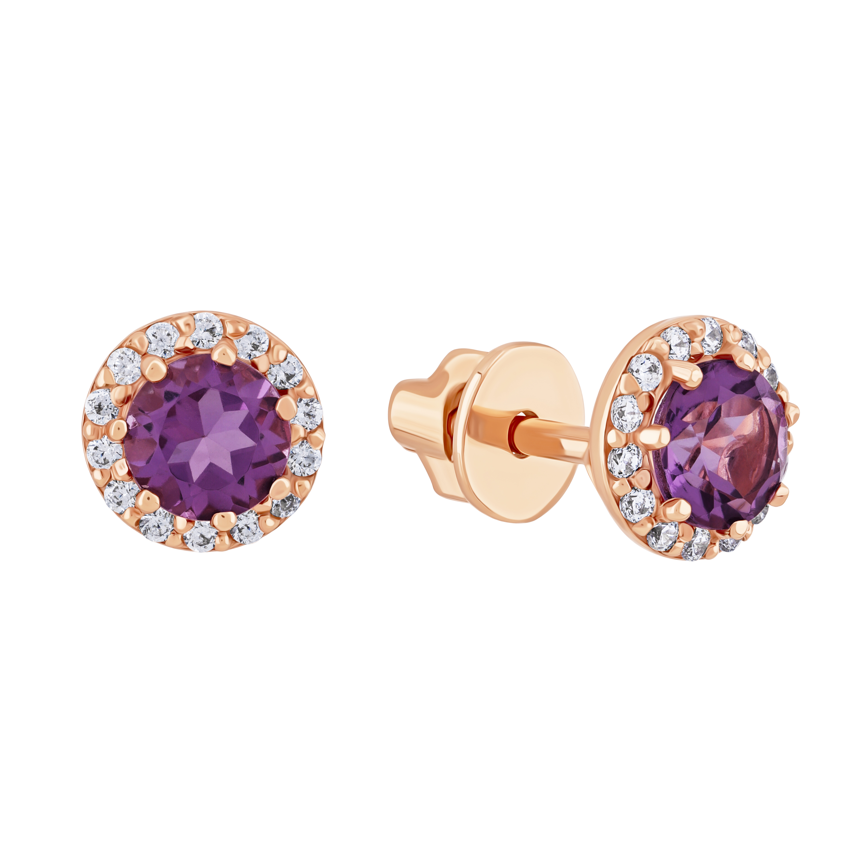 Сережки-пусети з червоного золота з аметистом і фіанітами - 2138054