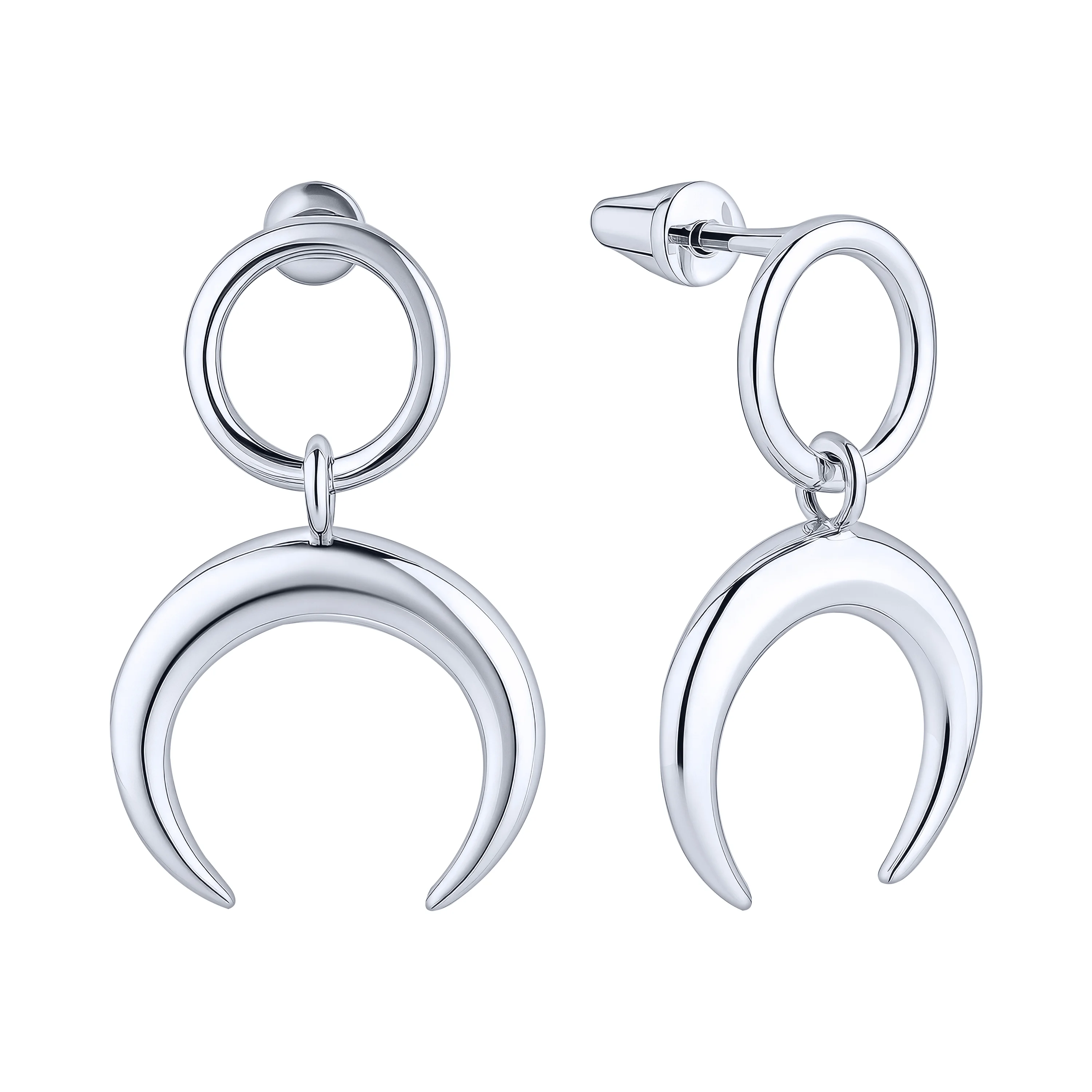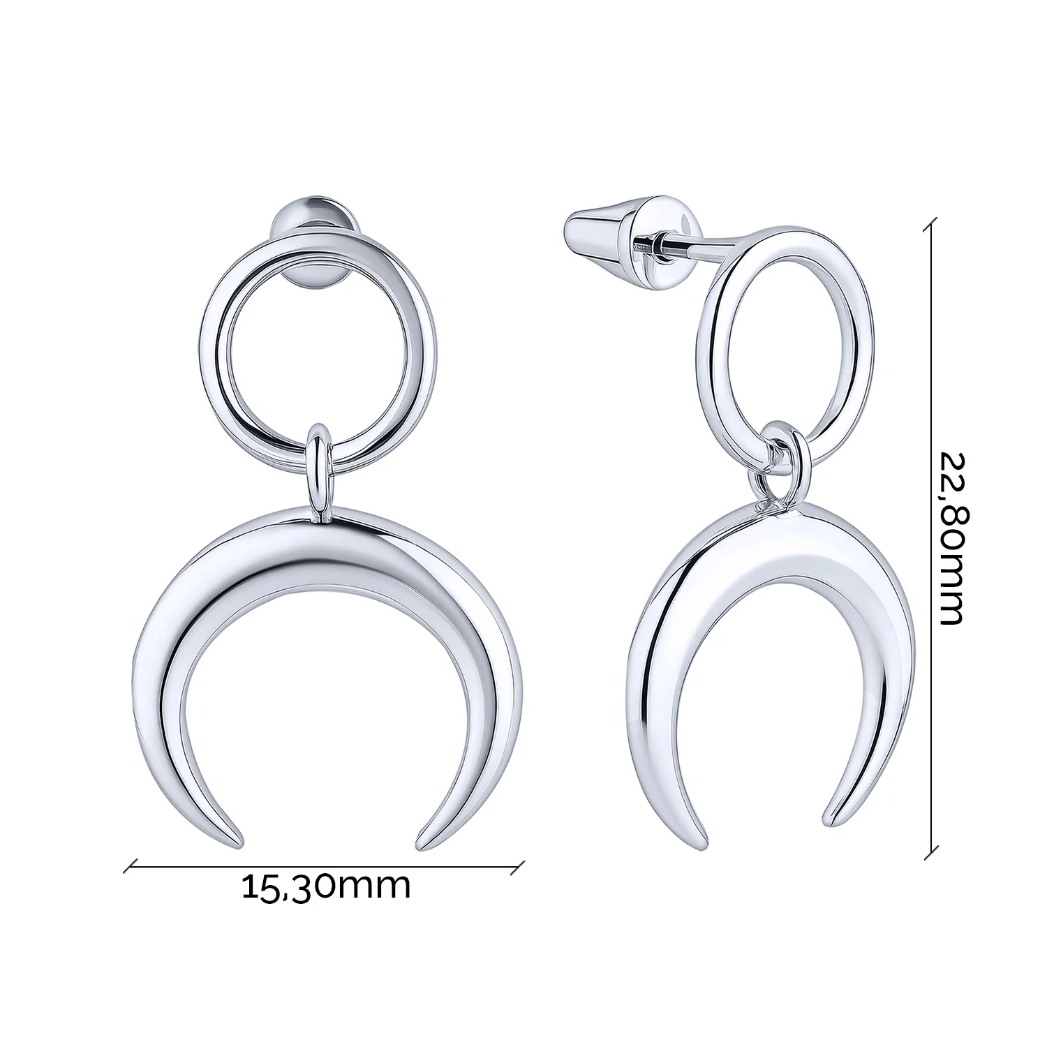 Сережки-пусети зі срібла "Місяць" з підвісом - 2123812