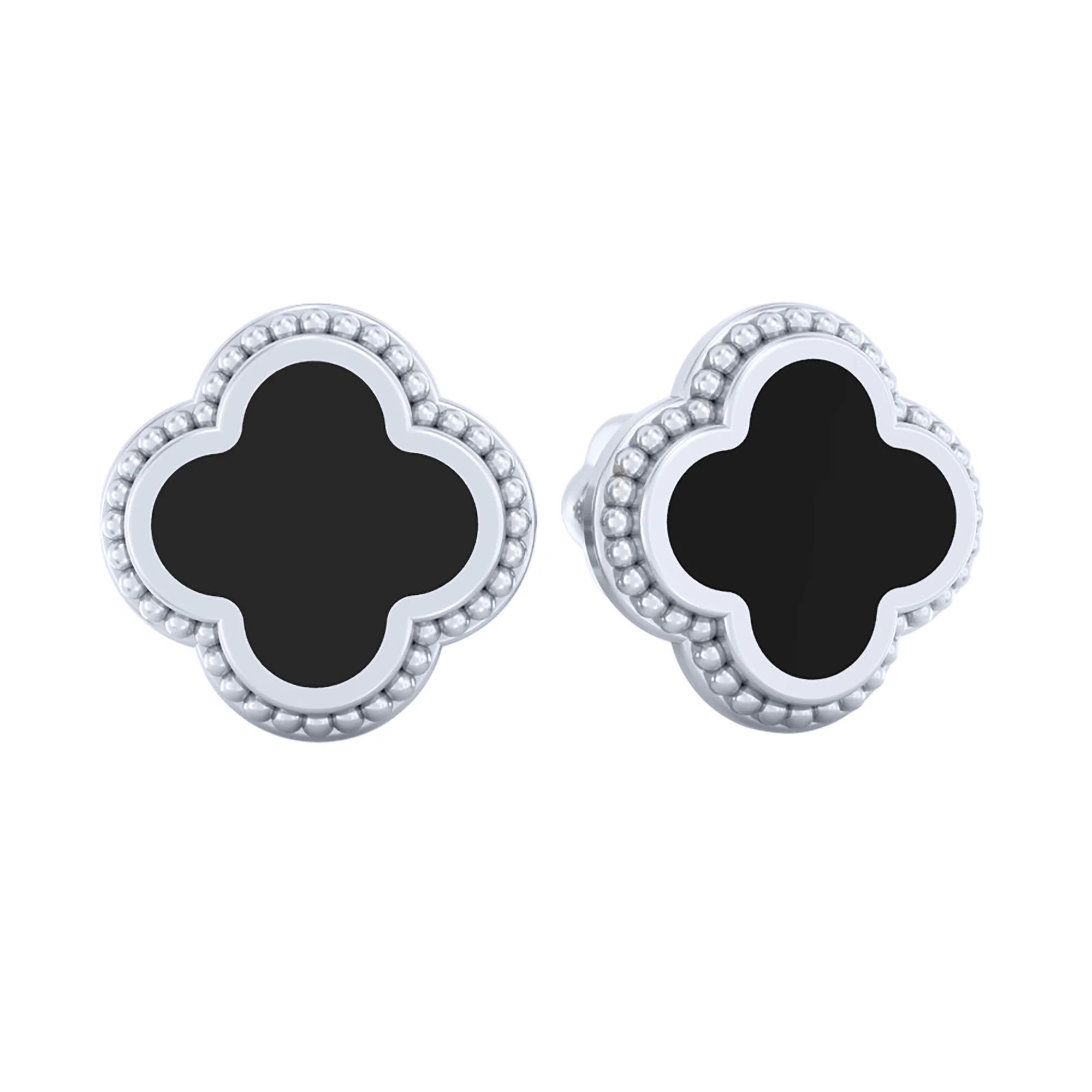 Сережки-пусети "Конюшина" з емаллю в білому золоті - 2014966