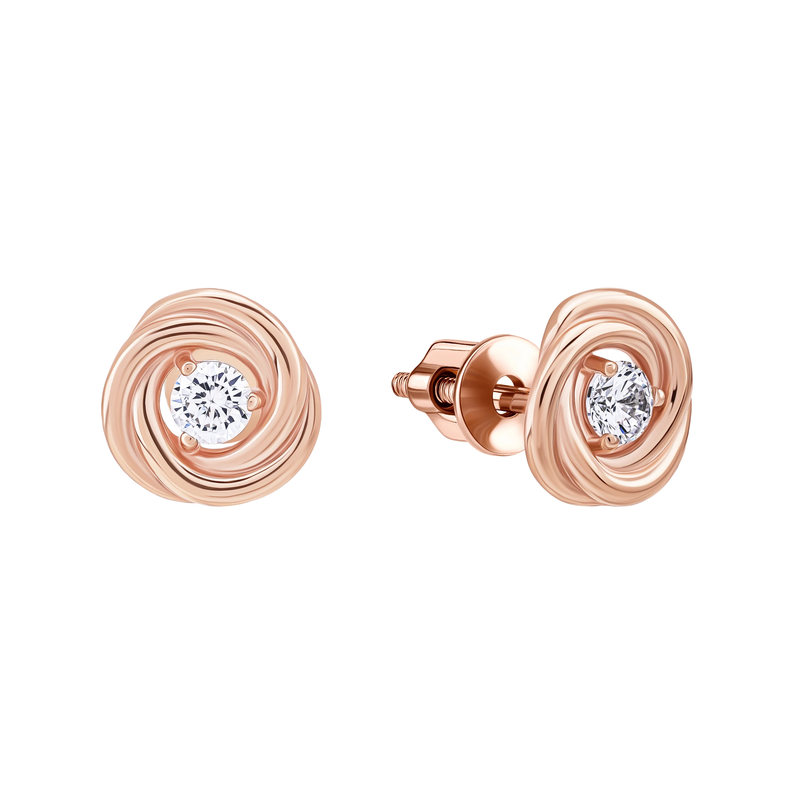 Сережки-пусети з фіанітами у червоному золоті - 2055499