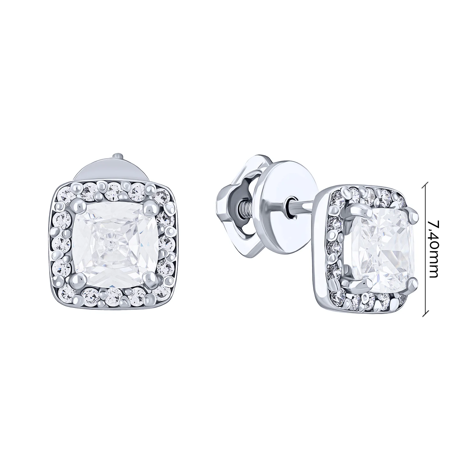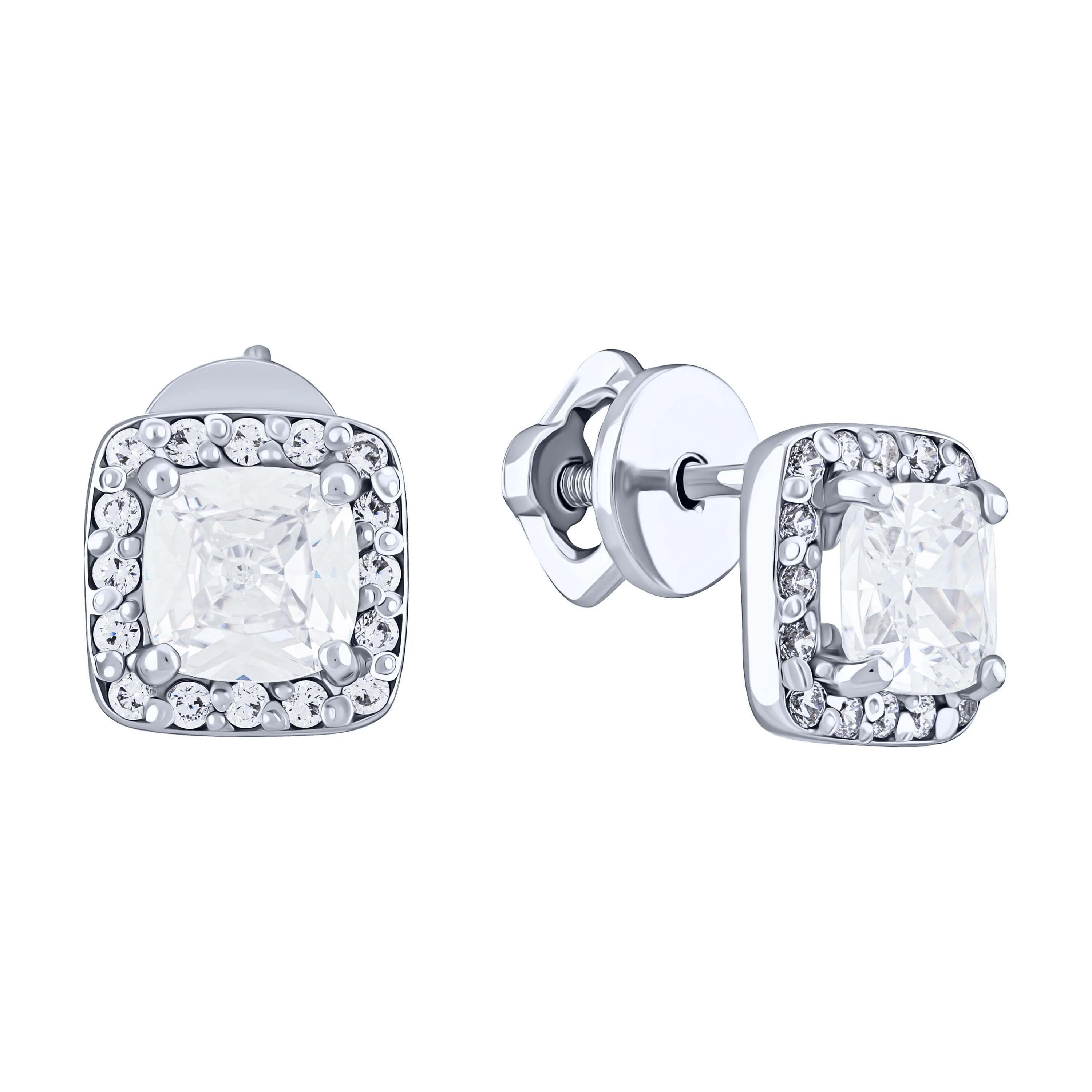 Сережки-пусети з фіанітами в сріблі - 2162842