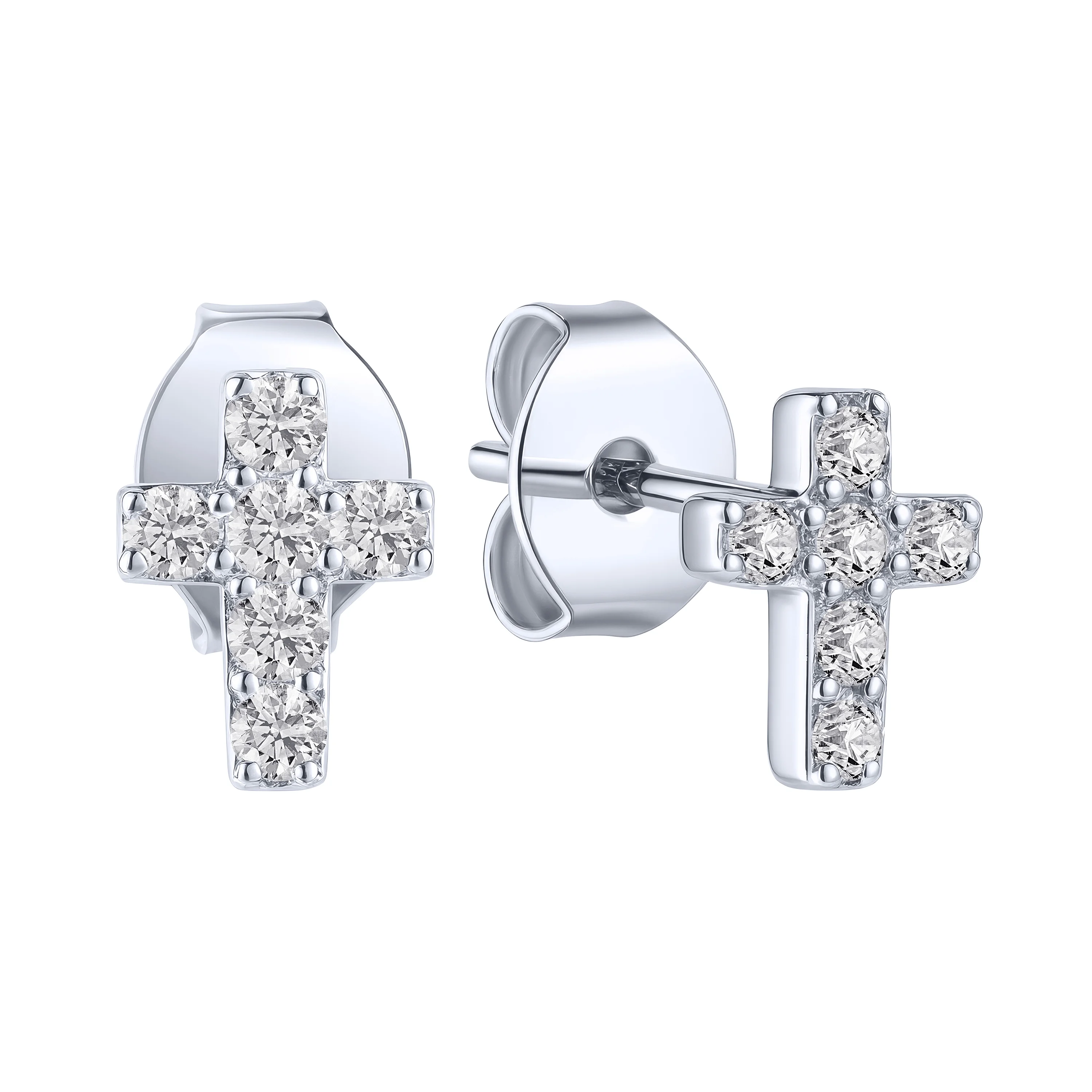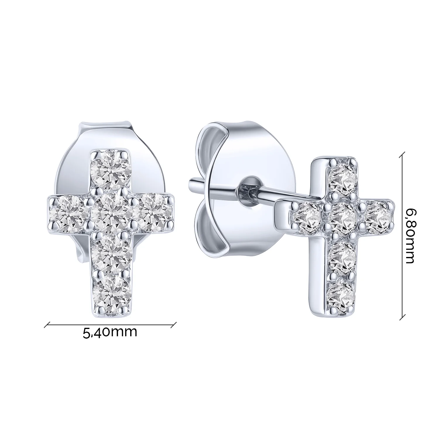 Сережки-пусети у сріблі "Крестик" з фіанітами - 2159984